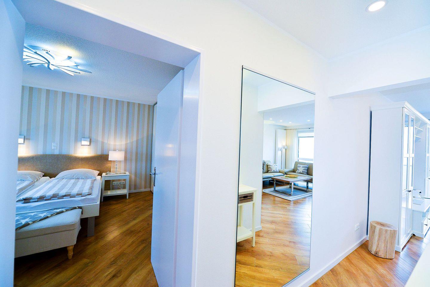 Moderne Ferienwohnung in Cuxhaven-Sahlenburg mit Meerblick, Balkon und Schwimmbad direkt am Strand.