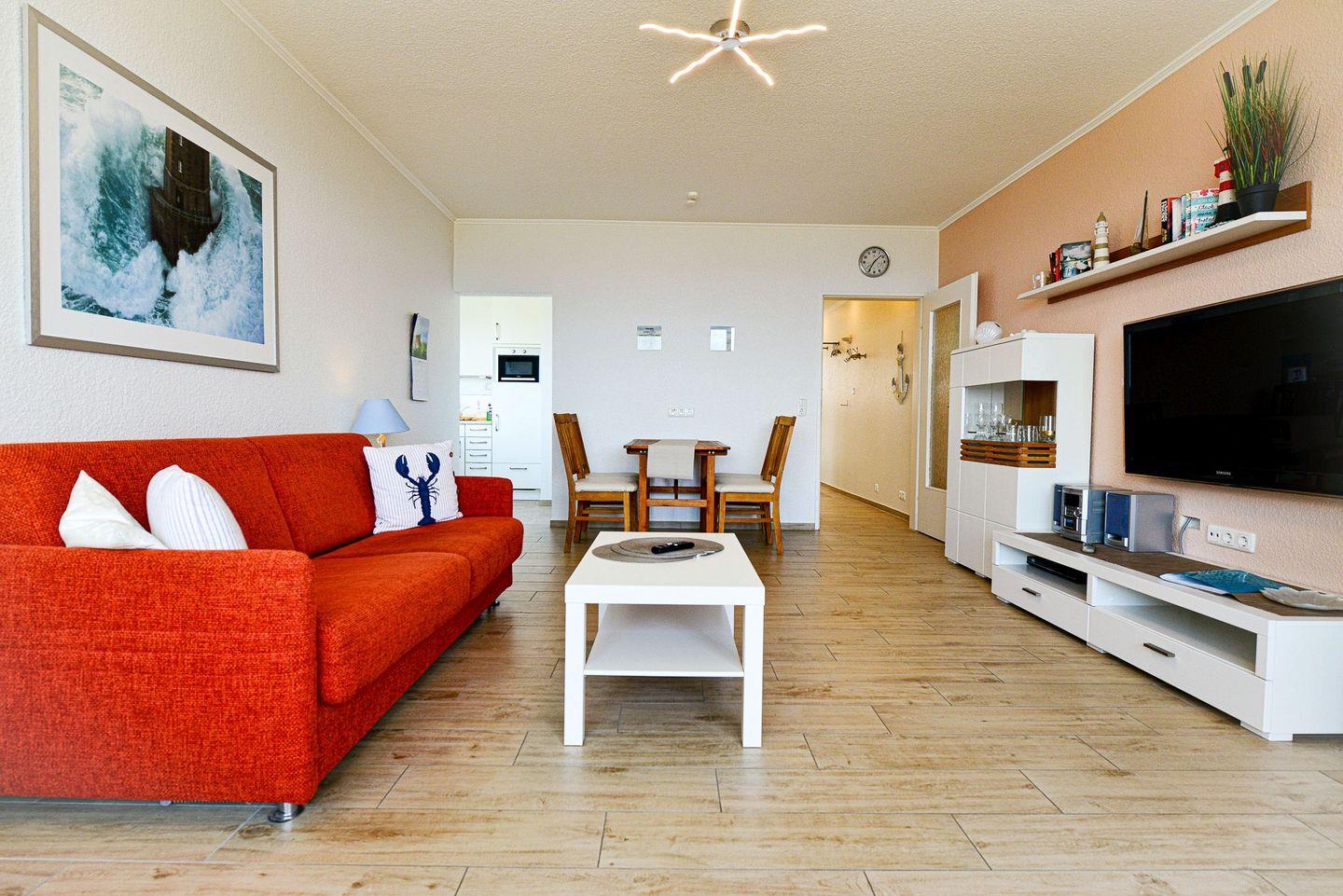 Die wunderbare Lage an der Strandpromenade bietet einerseits Entspannung und Erholung und andererseits direkten Zugang in das gemütliche und lebhafte Treiben von entspannten Urlaubern direkt vor der Türe.