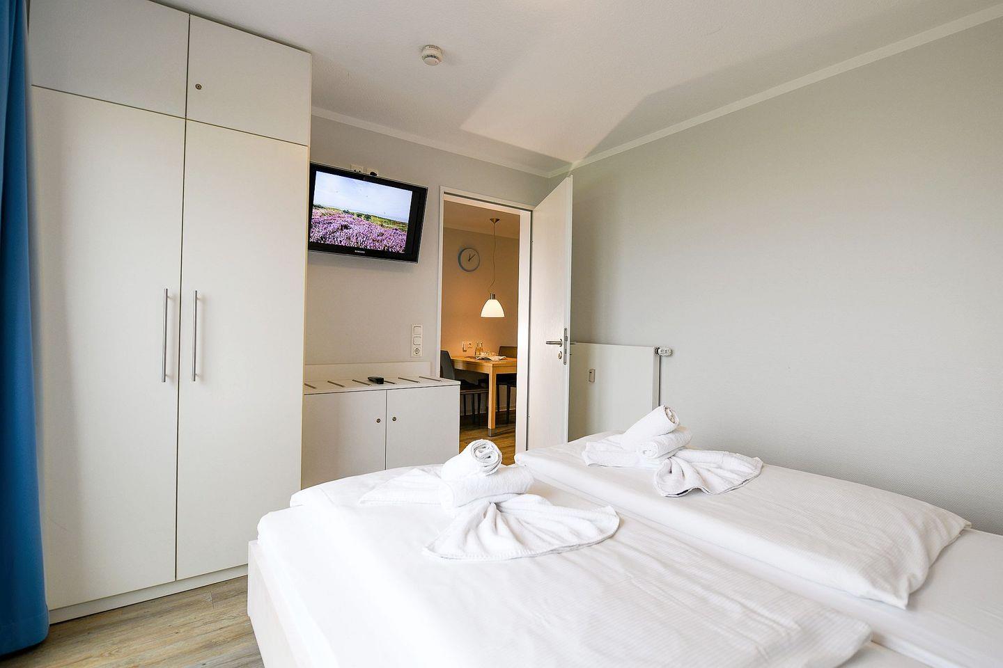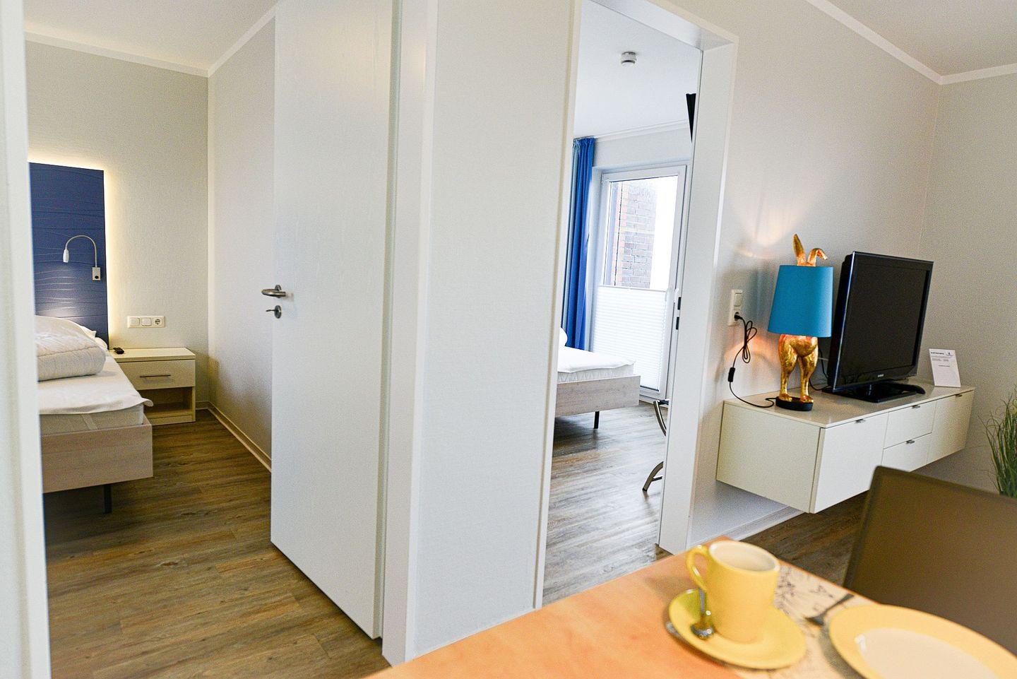 Das Beach Lodge Apartment BL01 in Cuxhaven-Sahlenburg bietet stilvolles Design, klare Raumaufteilung und direkten Meerblick – ideal für Paare oder kleine Familien.
