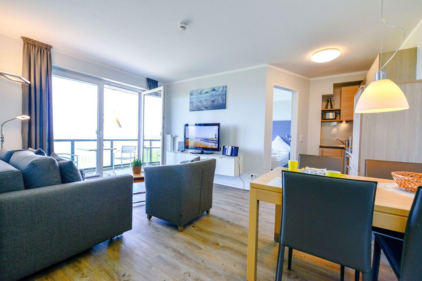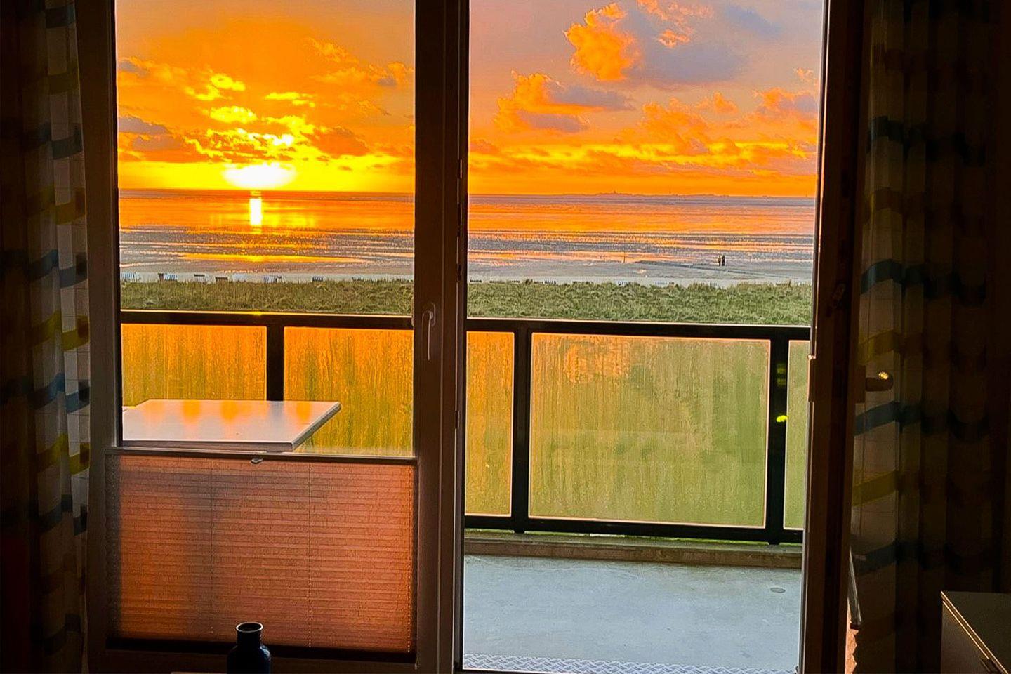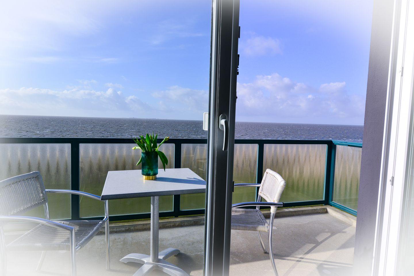 Die Ferienwohnung Küstenglück in Cuxhaven-Sahlenburg bietet Meerblick, Balkon und moderne Ausstattung direkt an der Promenade.