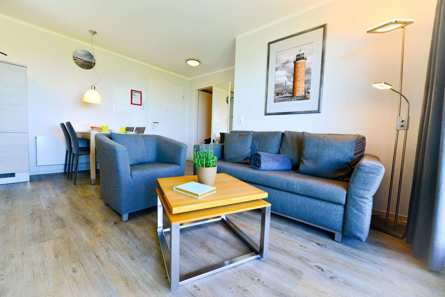 In der Ferienwohnung BL04 – Beach Lodge „Küstenglück“ genießen Sie Urlaub direkt an der Promenade von Cuxhaven-Sahlenburg mit freiem Meerblick.
