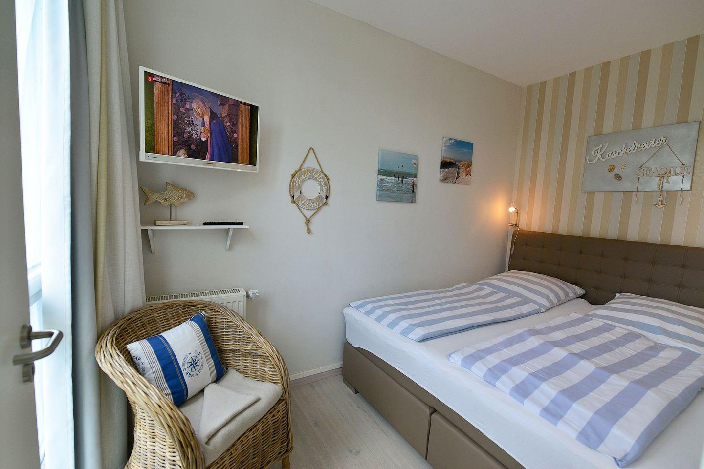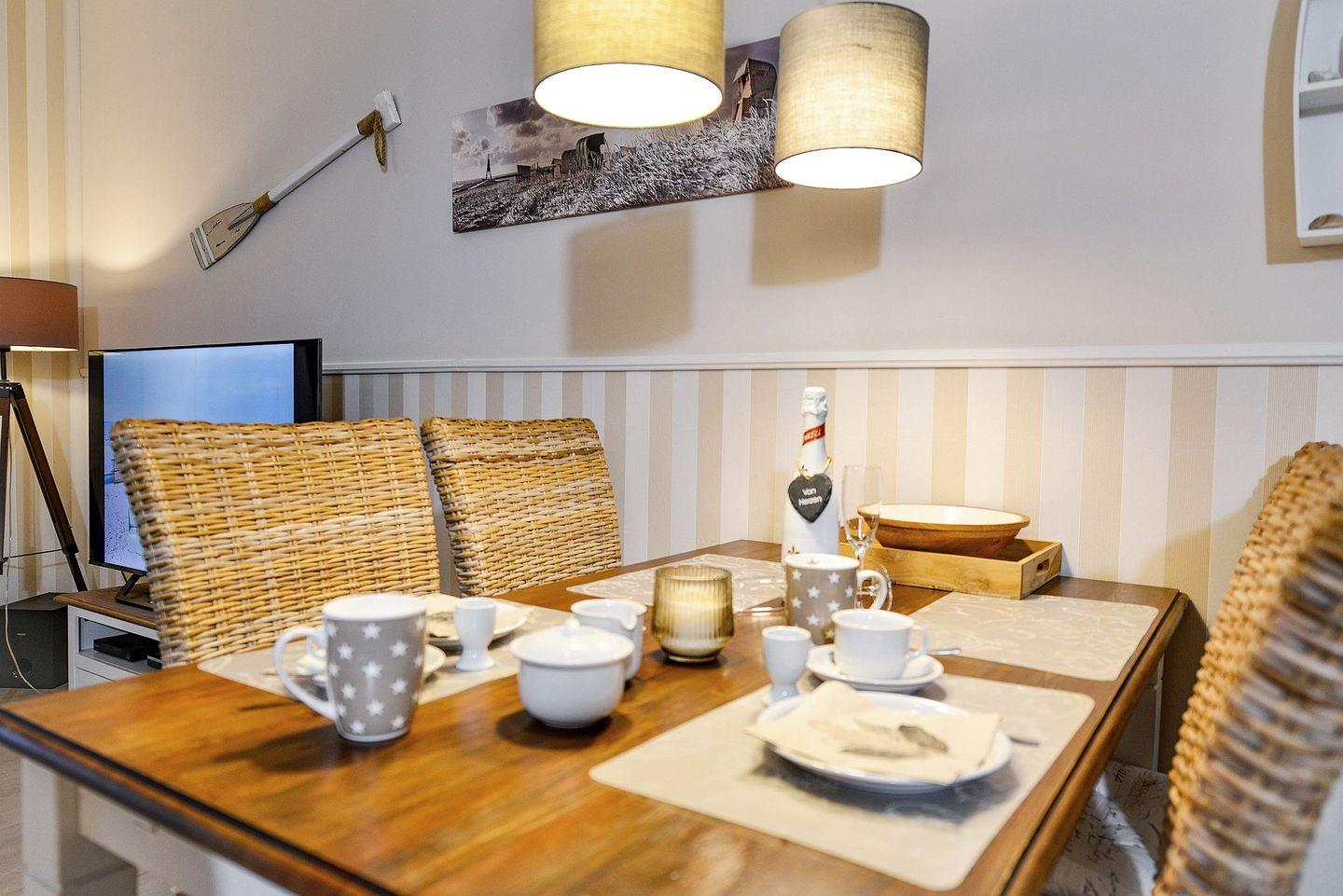 Diese stilvoll eingerichtete, ca. Die 71m² große Ferienwohnung für bis zu 2- 4 Personen bietet Ihnen ein hochwertiges Ambiente und jede Menge Komfort für einen unvergesslichen Aufenthalt. Genießen Sie entspannte Stunden auf Ihrer privaten Terrasse mit eigenem Strandkorb und lassen Sie sich von der frischen Nordseeluft verwöhnen.