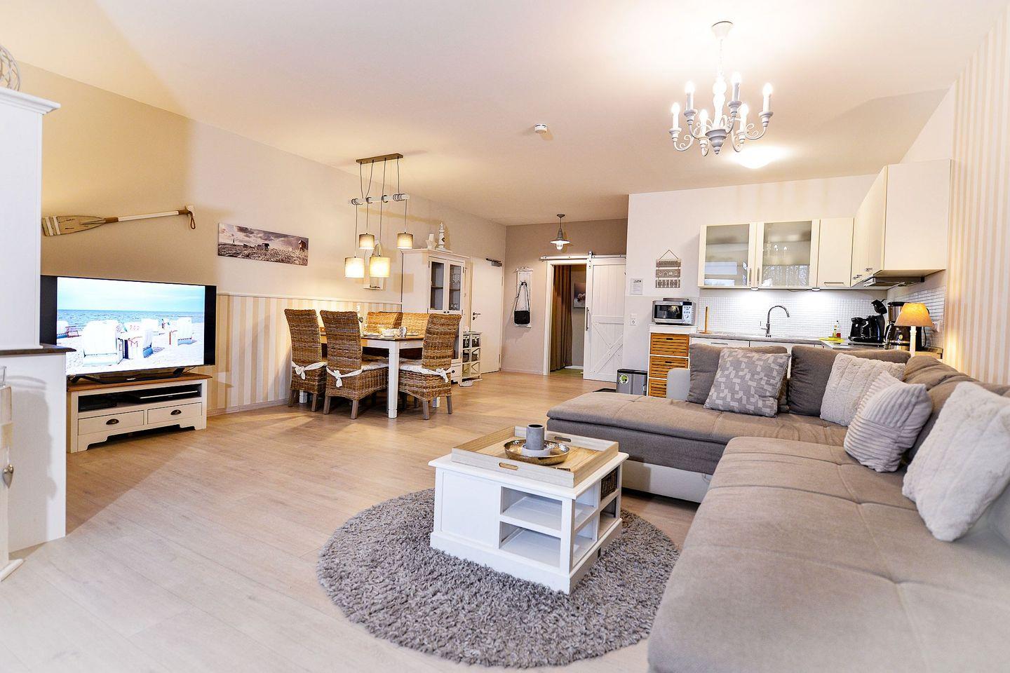 Die ca. 71m² große, hochwertig und nordisch-elegant eingerichtete Ferienwohnung für bis zu 4 Personen lässt keine Wünsche an einem unvergesslichen Urlaub in stilvollem Ambiente offen.