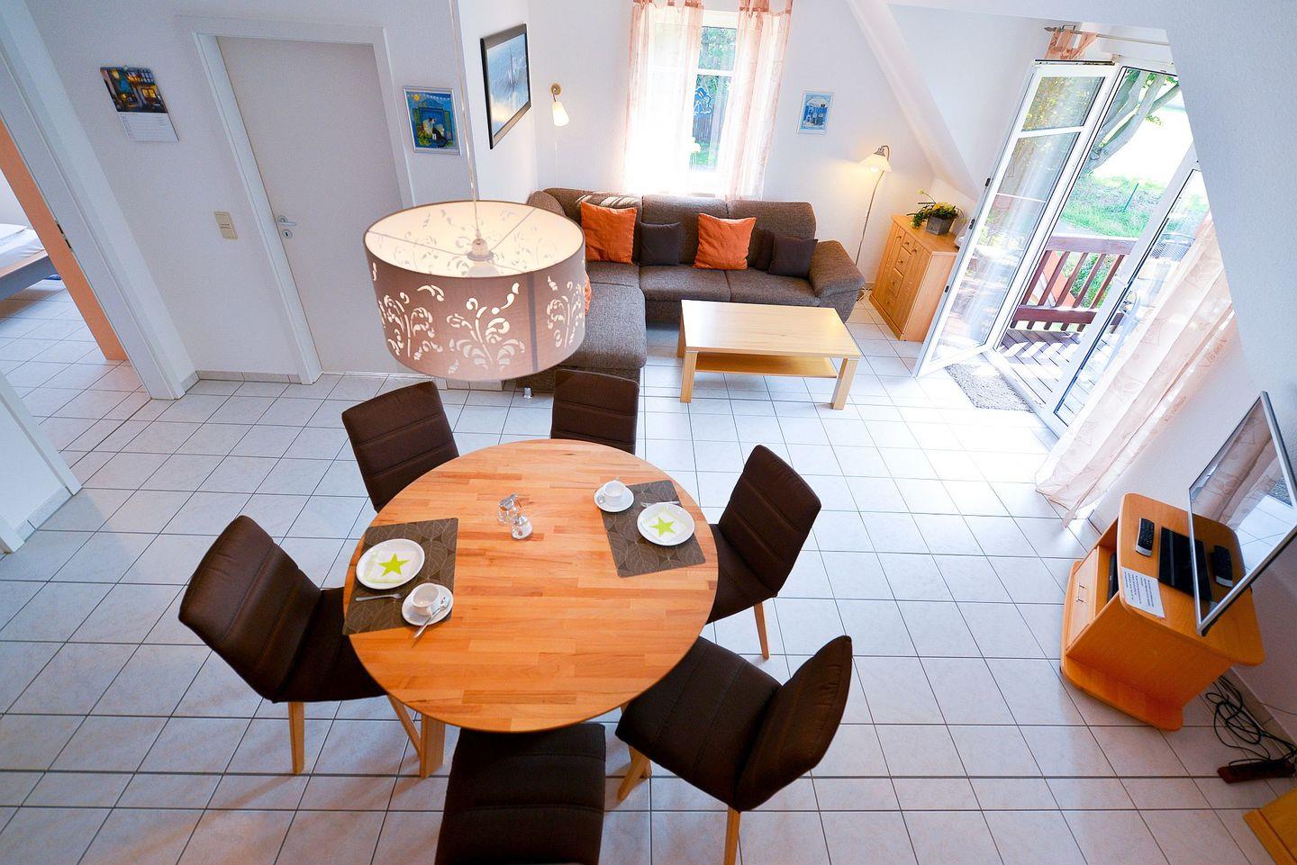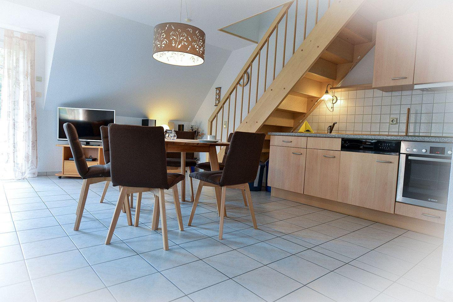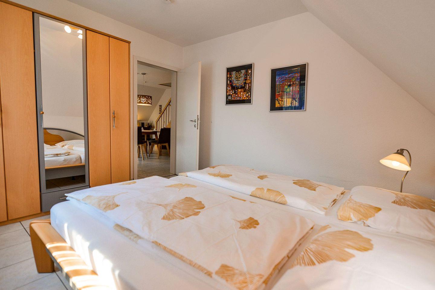 Ferienwohnung in Cuxhaven-Sahlenburg, ca. 70 m² groß und in der 1. Etage gelegen. Die Wohnung bietet eine vollausgestattete Küche, ein großes Bad, Fußbodenheizung über zwei Etagen, zwei Flatscreen-TVs, DVD-Player, WLAN und eine eigene Waschmaschine. Der überdachte Südbalkon lädt zu Frühstück oder gemütlichen Abenden ein. Der Strand ist nur ca. 900 m entfernt und fußläufig erreichbar. Ein kostenfreier Parkplatz befindet sich direkt am Haus. Auch ein kleiner Hund darf mitgebracht werden.