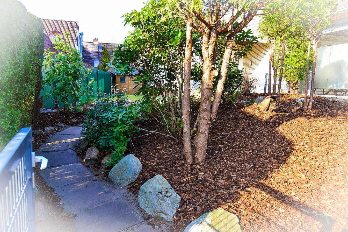 Die Gartenanlage des Grundstücks wurde kürzlich umgestaltet mit einer Rasenfläche/ Liegewiese mit Sonnenliegen auch Ihr Vierbeiner ist herzlich eingeladen, den Urlaub hier mit Ihnen zu verbringen.