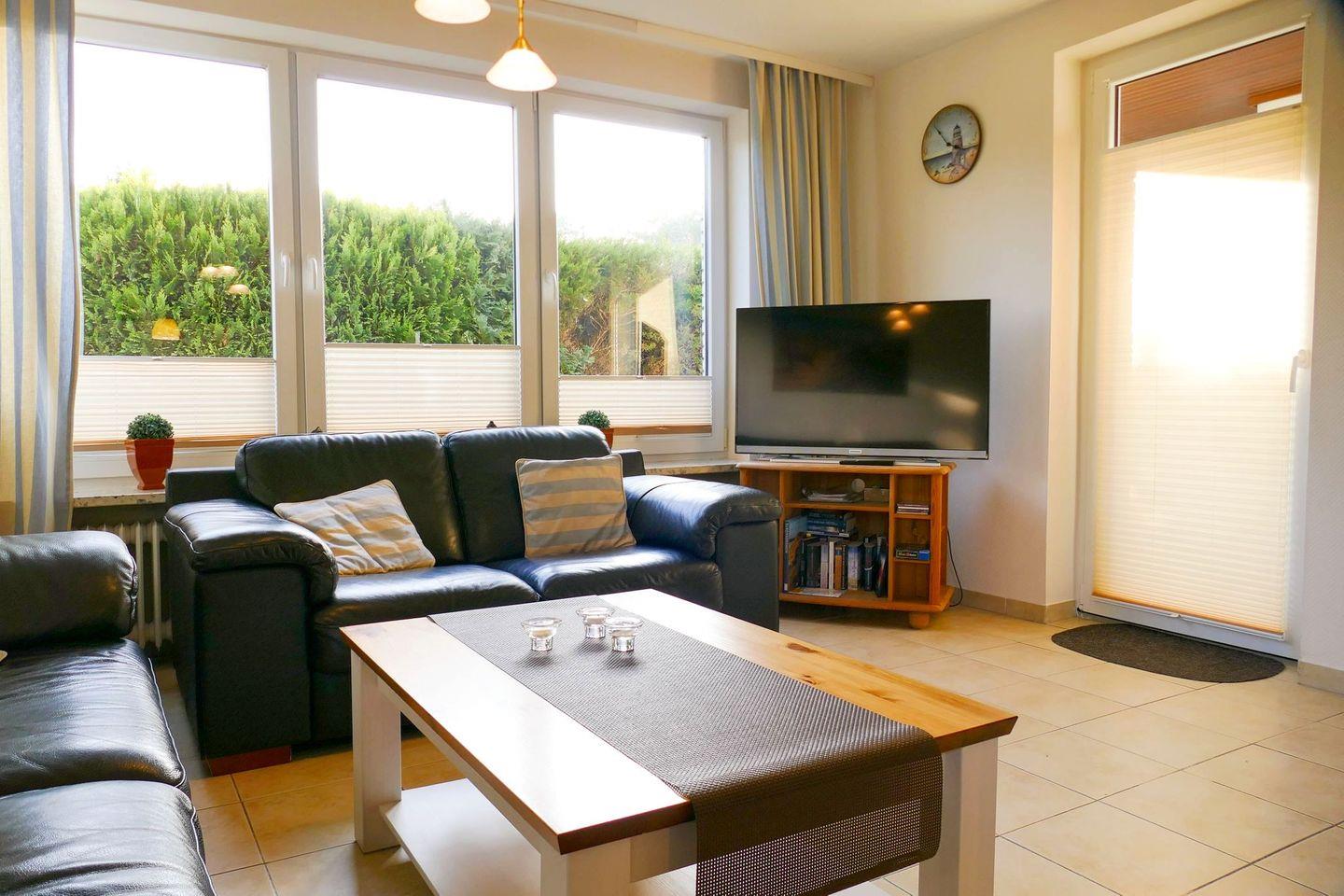 80m² Wohnfläche in einem freistehenden Ferienhaus an der Nordsee mit überdachter Sonnenterrasse. 4 Personen finden in der gemütlichen Ferienwohnung ihr Urlaubsdomizil für entspannte Urlaubstage an der Nordsee. Für einen komfortablen Urlaubsalltag bietet Ihnen die Ferienwohnung alles, was Sie für einen sorgenfreien Urlaub benötigen - von der vollausgestatteten Küche bis zum großen Flatscreen-TV für gemütliche Abendstunden.