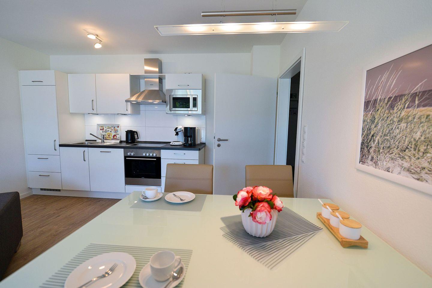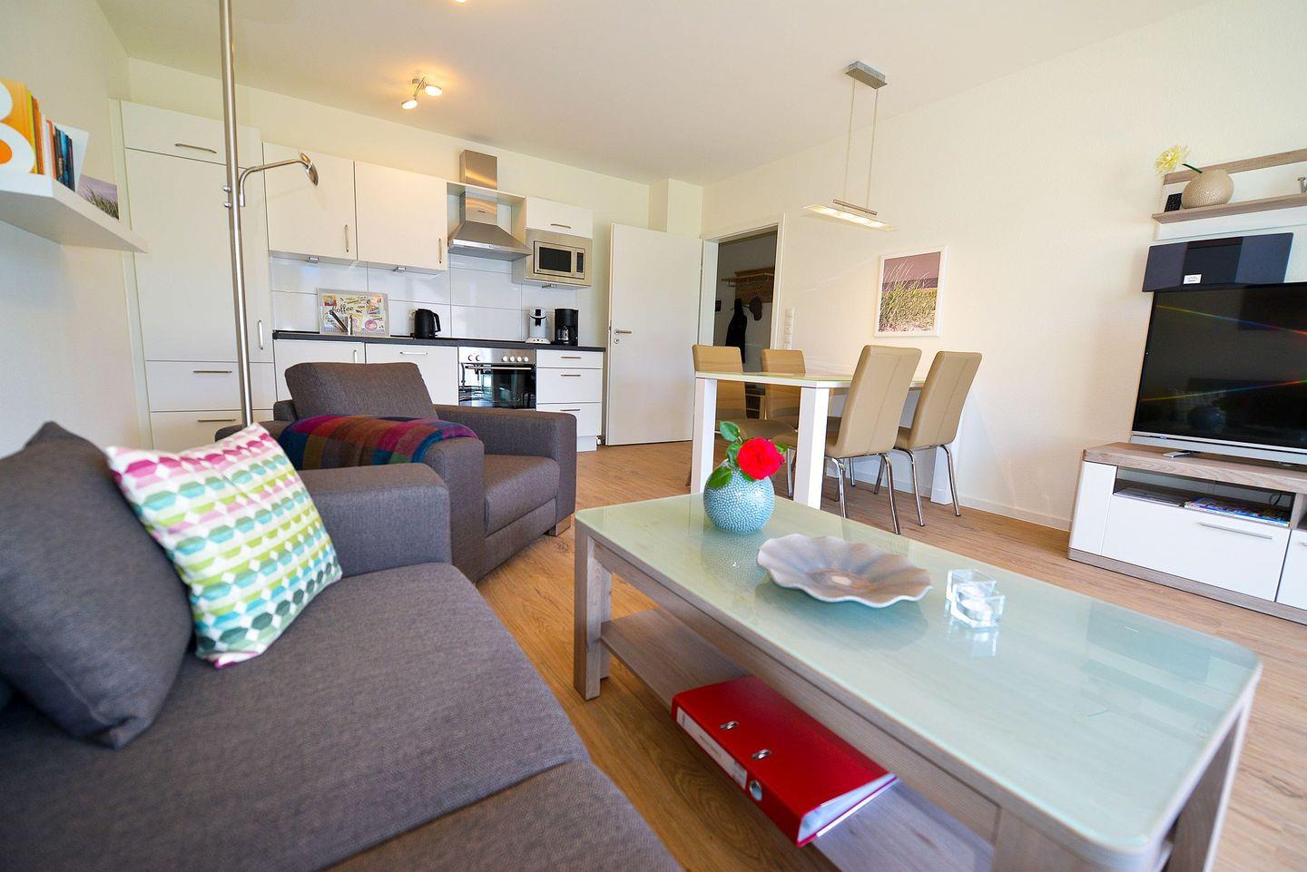 Moderne Ferienwohnung im Haus Hohe Geest, auch Quartier Hohe Geest genannt, mit hochwertiger Ausstattung, Fußbodenheizung, WLAN, Smart-TV, Balkon oder Terrasse und Tiefgarage. Helle Räume, liebevolle Details und nordisches Design laden zum Entspannen ein. Nur wenige Minuten zum Strand, Bäcker und Restaurants in der Nähe – ideal für Ihren erholsamen Nordseeurlaub.