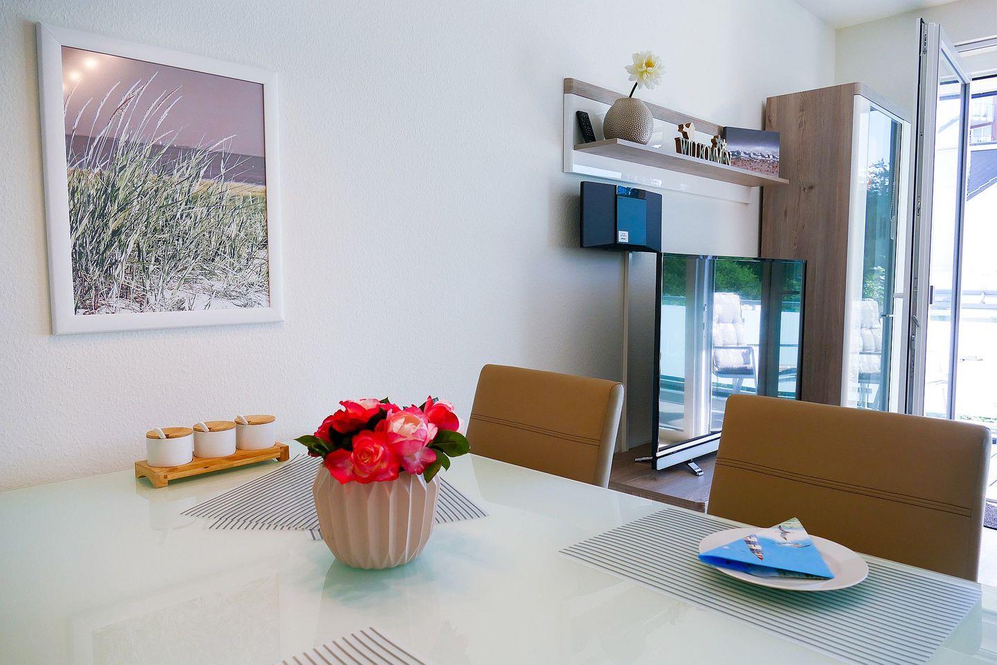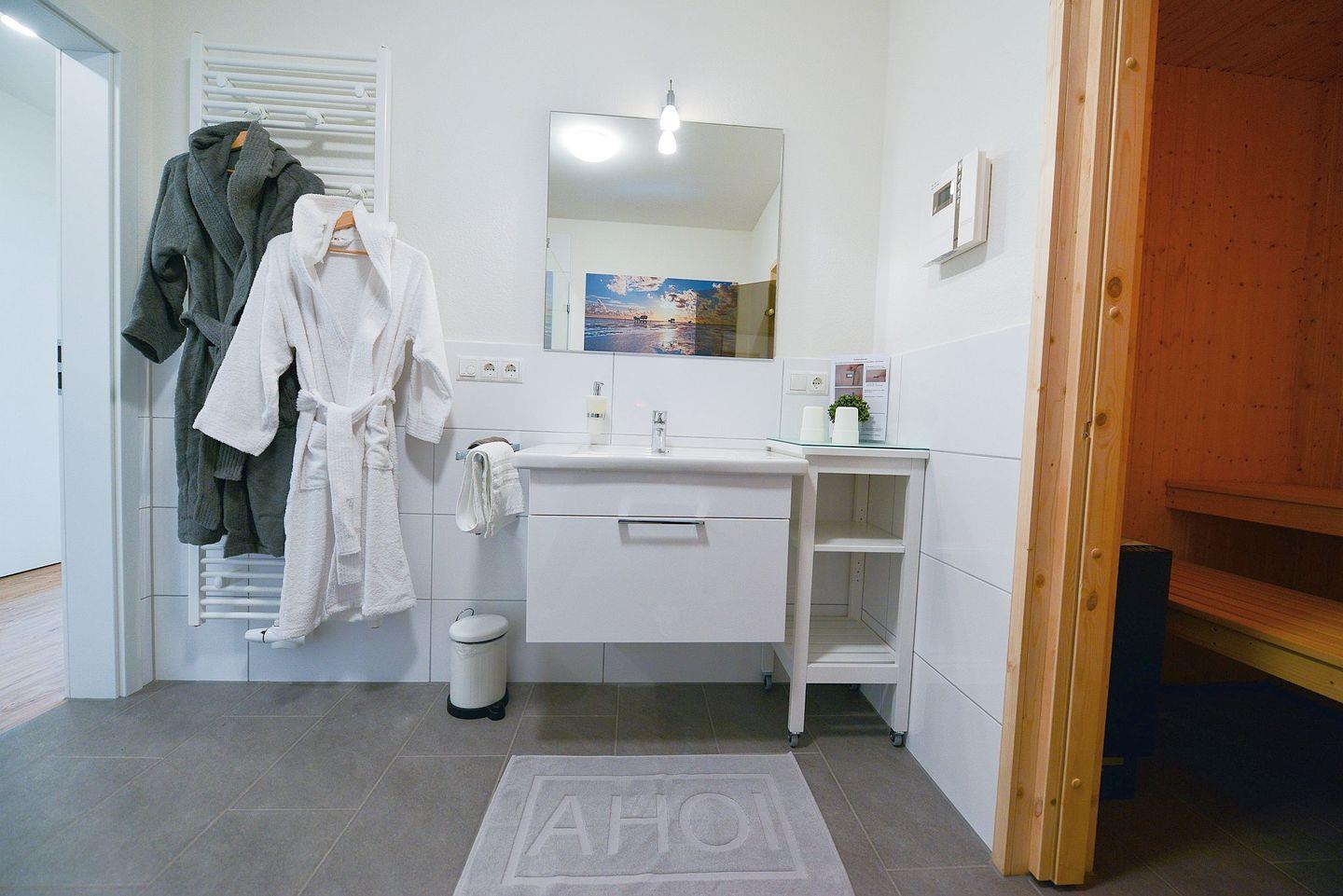 Moderne Ferienwohnung mit Sauna, Balkon und XXL-Parkplatz in Cuxhaven-Sahlenburg, nur wenige Minuten vom Strand entfernt.