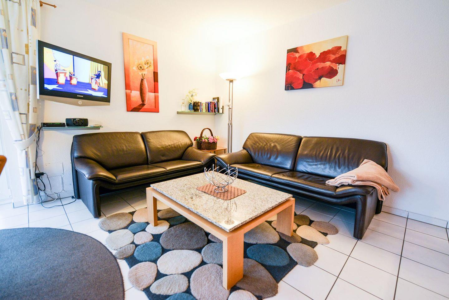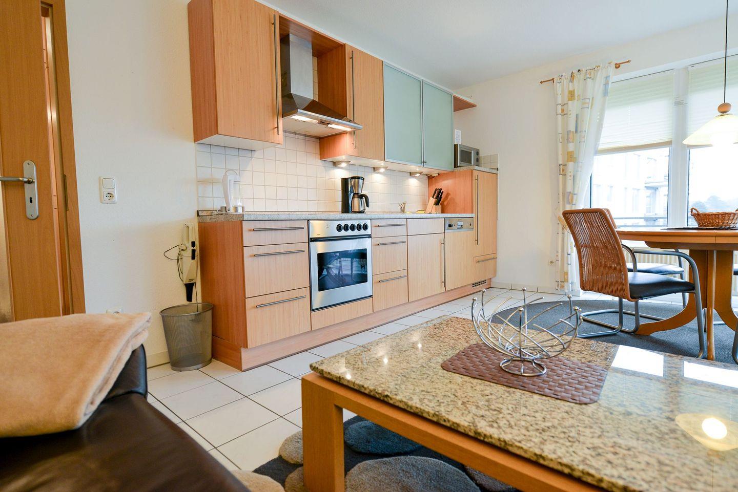 In der modernen und voll ausgestatteten Küchenzeile lassen sich köstliche Gerichte zubereiten, die Ihnen, mit einer frischen Meeresbrise garniert, den Urlaub versüßen. Der gemütliche Wohnbereich mit Flatscreen und der schöne, umherlaufende Südostbalkon bieten Ihnen viel Raum zum Entspannen und Erholen, wenn der lange Strandtag sich langsam dem Ende zuneigt.
