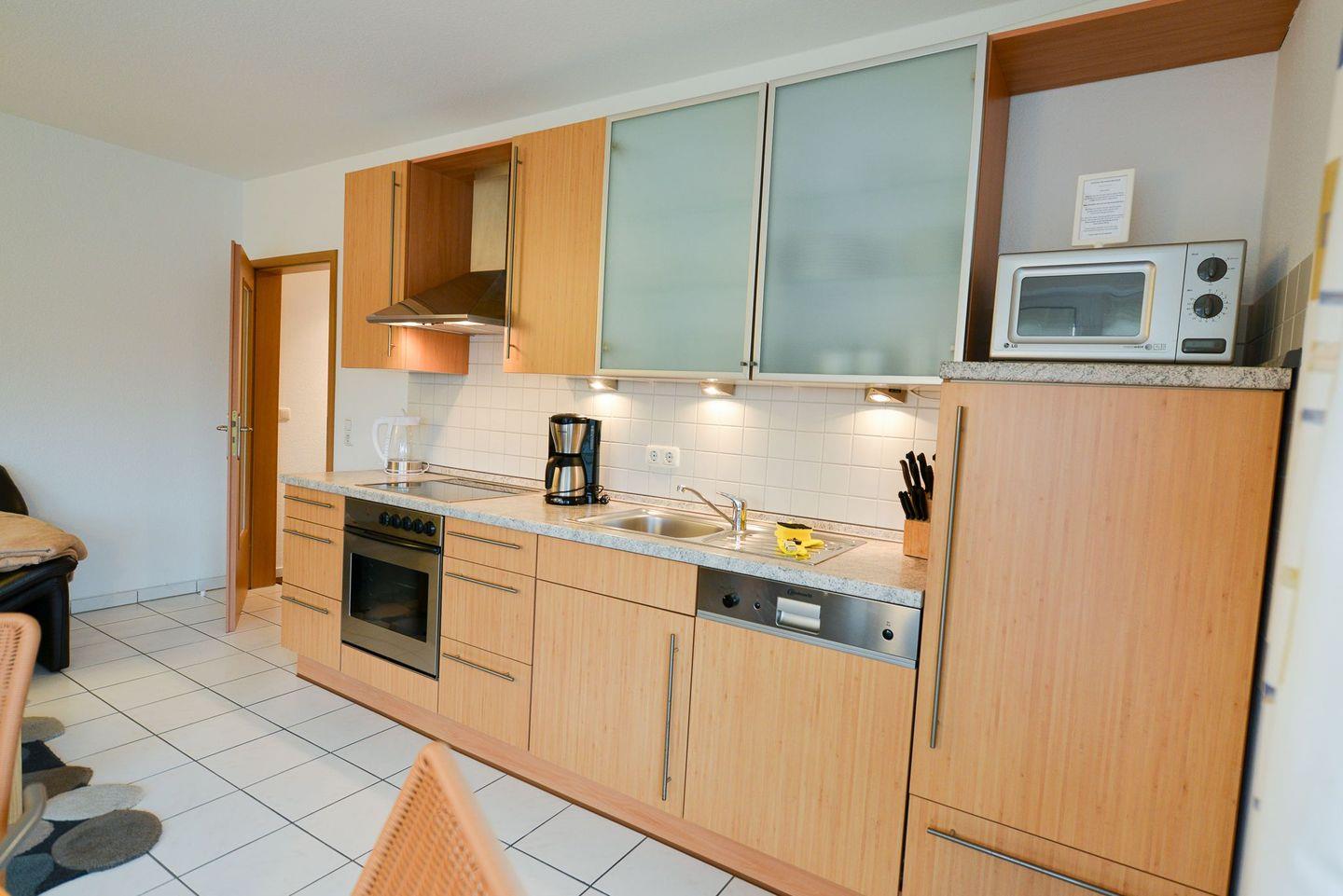 In der modernen und voll ausgestatteten Küchenzeile lassen sich köstliche Gerichte zubereiten, die Ihnen, mit einer frischen Meeresbrise garniert, den Urlaub versüßen.