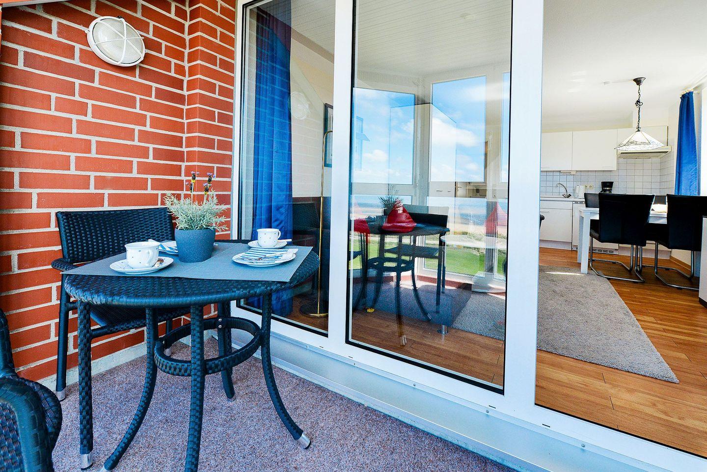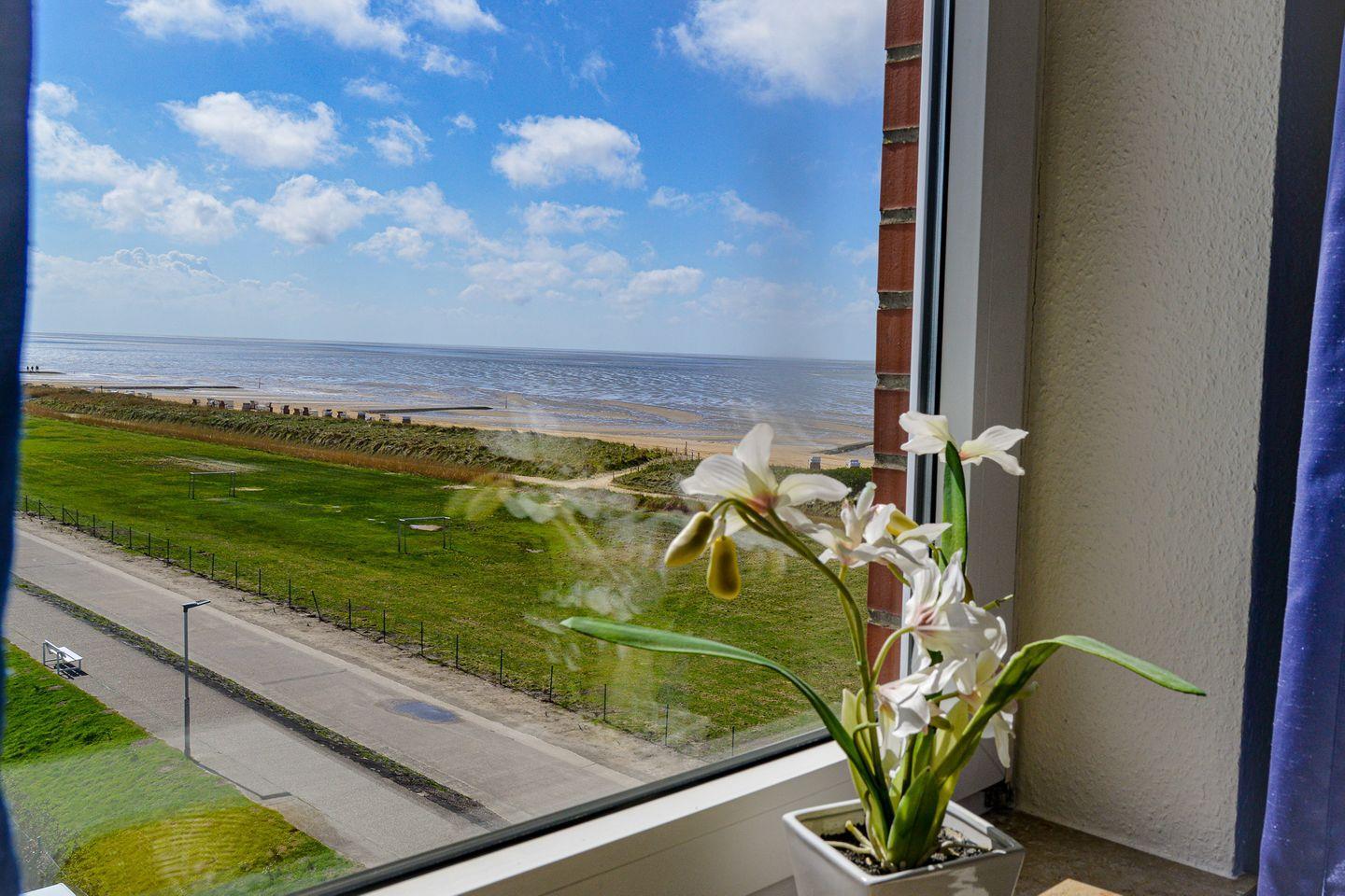 4. OG – Wohnung an der Promenade mit Panorama-Seesicht! Genießen Sie Ihre Auszeit auf dem verglasten Westbalkon mit direktem Blick auf das Meer und die Insel Neuwerk. Der Balkon lässt sich öffnen – ideal zum Durchatmen. Der Aufzug (Eingang 7a) fährt bis zur 3. Etage, über den Außenbalkon erreichen Sie die Eingänge 7/7b und das Treppenhaus zum 4. OG. Meeresluft, Ruhe und Ausblick inklusive!