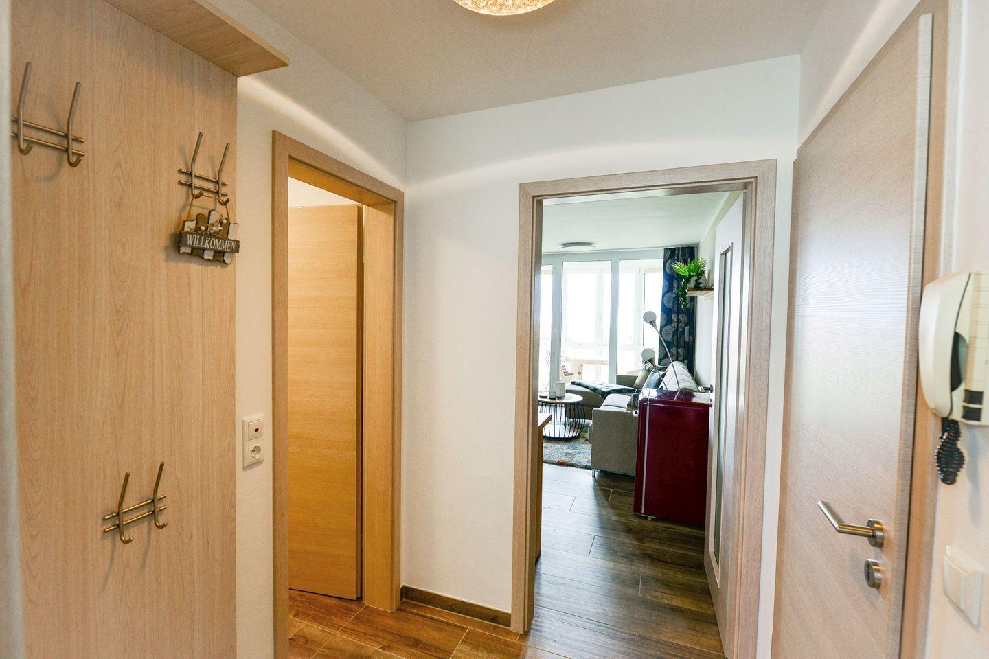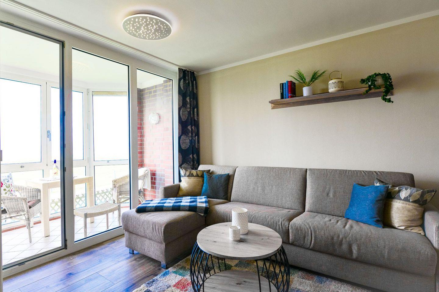 Moderne Ferienwohnung mit Seeblick, verglastem Balkon und Sauna direkt an der Strandpromenade Sahlenburg.