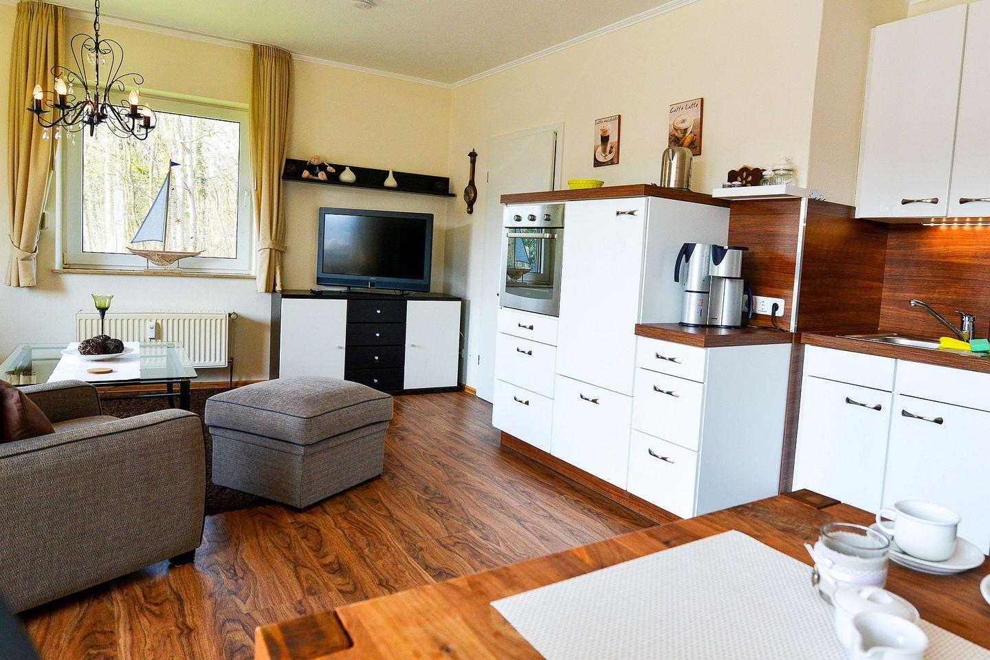 LM 23 Ferienwohnung 50m² im Haus Land und Meer – Cuxhaven Sahlenburg strandnah. Zwei überdachte Balkone laden zum Entspannen ein. Voll ausgestattete Küche, inkl. kostenfreie Tiefgarage – preisgünstig urlauben an der Nordsee.