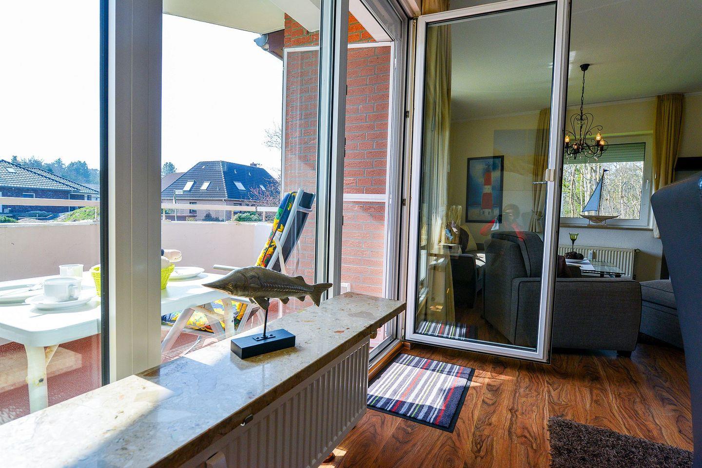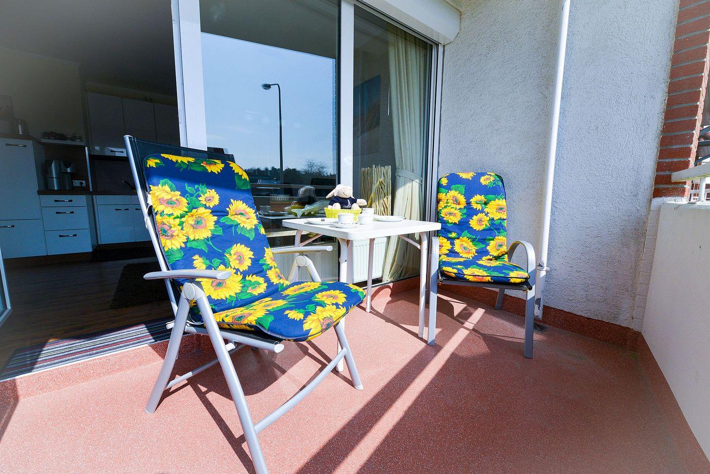 Gemütliche Ferienwohnung in Cuxhaven-Sahlenburg mit zwei Balkonen, Strandnähe und kostenfreier Tiefgarage für erholsame Nordseeferien.