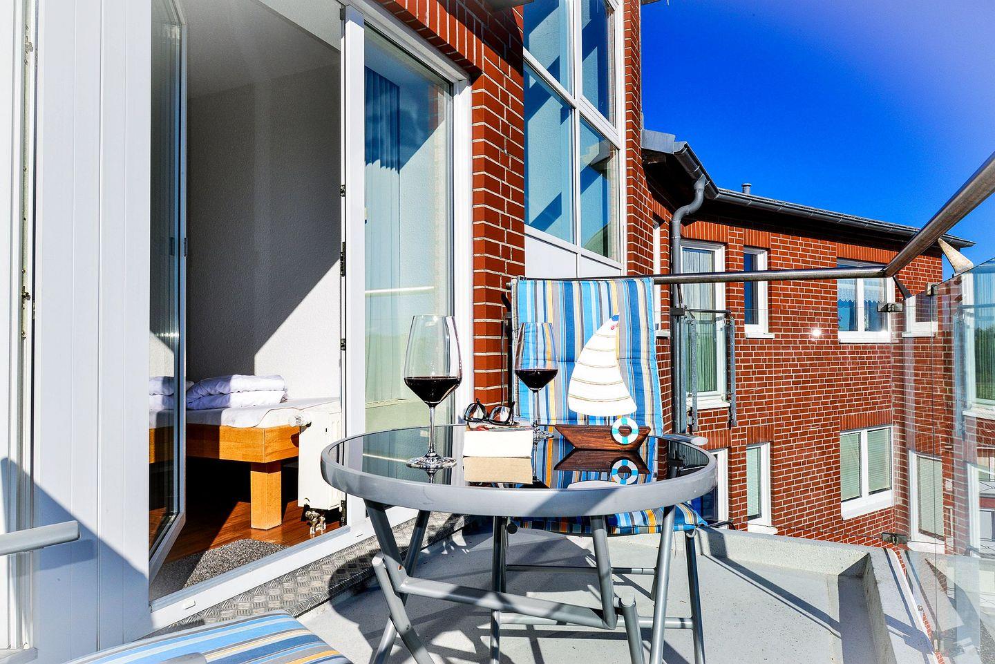 Gemütliche Ferienwohnung in Cuxhaven mit zwei Balkonen und direktem Meerblick für erholsame Tage an der Nordsee.