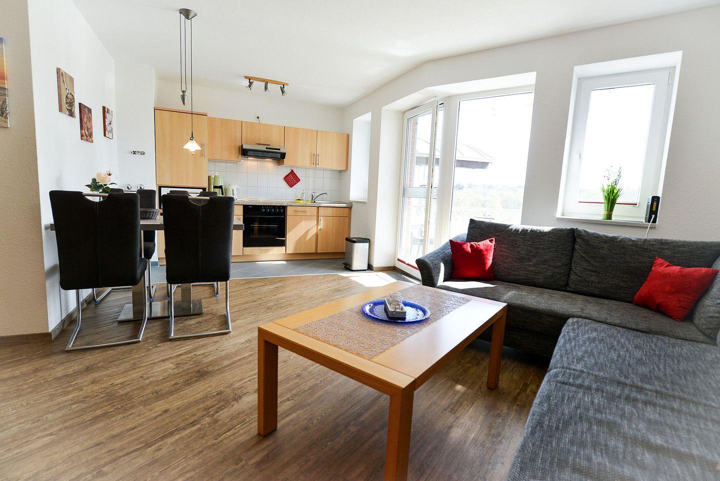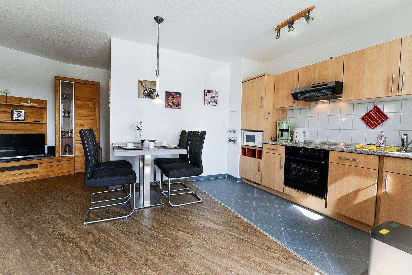 Auf ca. 48m² begrüßt diese Ferienwohnung Ihre Gäste mit schöner Ausstattung und genügend Raum, um sich ganz auf den Urlaub zu konzentrieren.