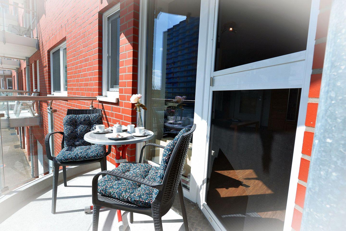 Für erholsame und schöne Stunden nach einem langen Tag am Meer, eignet sich der schöne Südbalkon der Ferienwohnung ideal.
