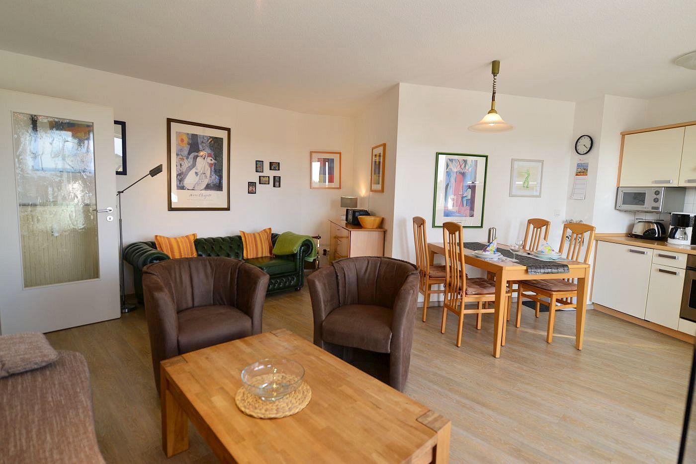 Die vollwertige Ausstattung der Ferienwohnung wird Sie keine Annehmlichkeiten des Alltags vermissen lassen und bietet Ihnen alles, was Sie für einen Urlaub ohne Abstriche benötigen. Der schöne Südbalkon lädt dazu ein, lange Strandtage in gemütlicher Atmosphäre ausklingen zu lassen.
