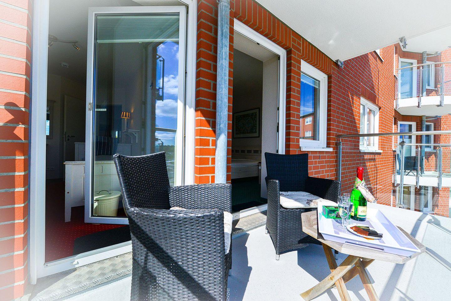 Die beiden Balkone, einer davon mit seitlicher Seesicht und Blick auf die Insel Neuwerk, laden dazu ein, erholsame Stunden mit frischer Meeresluft nach einem langen Tag am Meer zu verbringen.