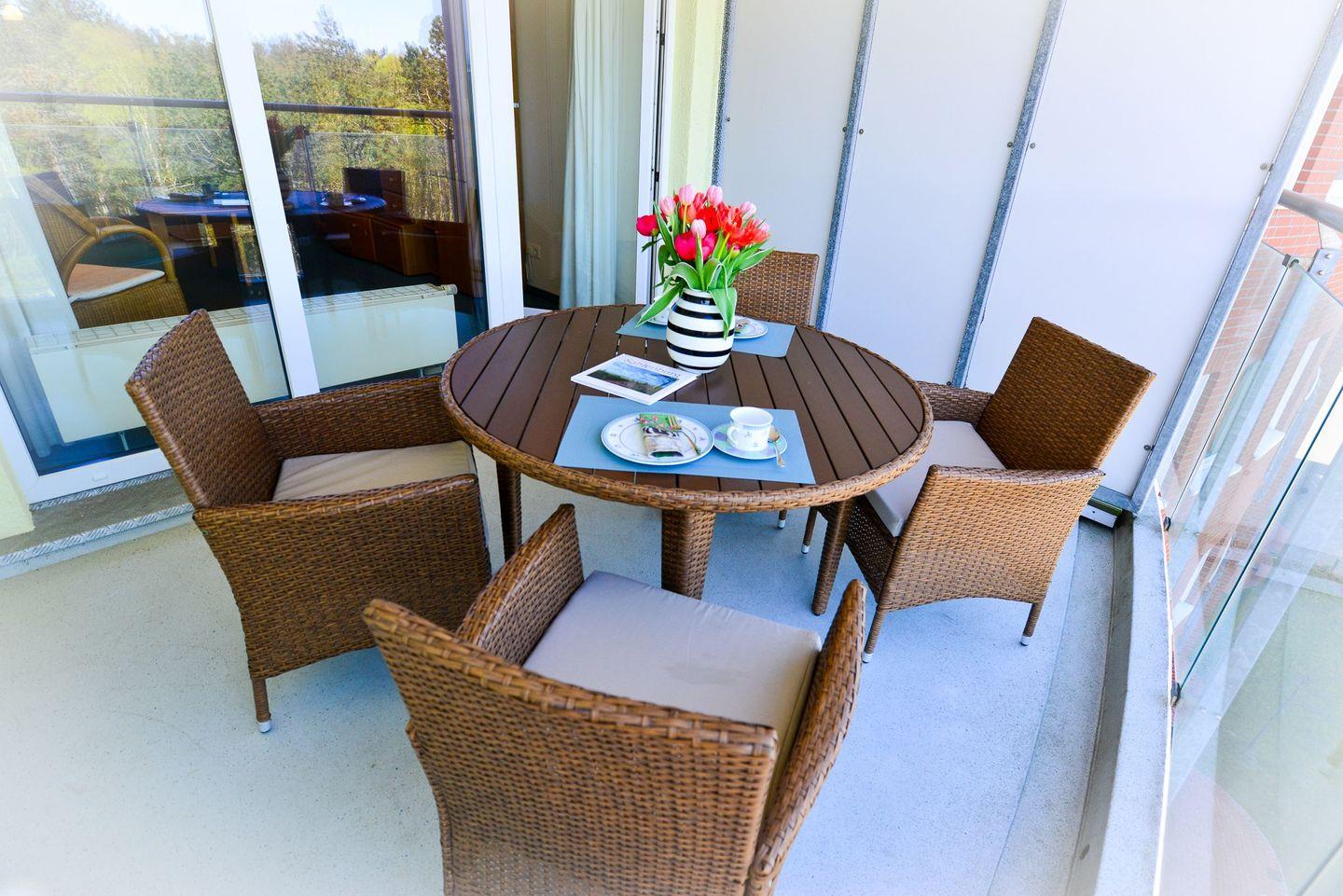 Die beiden überdachten Balkone, einer davon mit Seesicht, laden dazu ein lange Tage am Strand ganz gemütlich und entspannt ausklingen zu lassen .