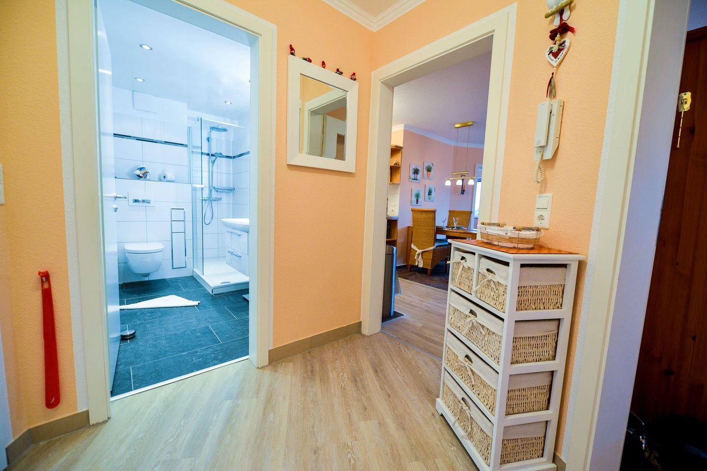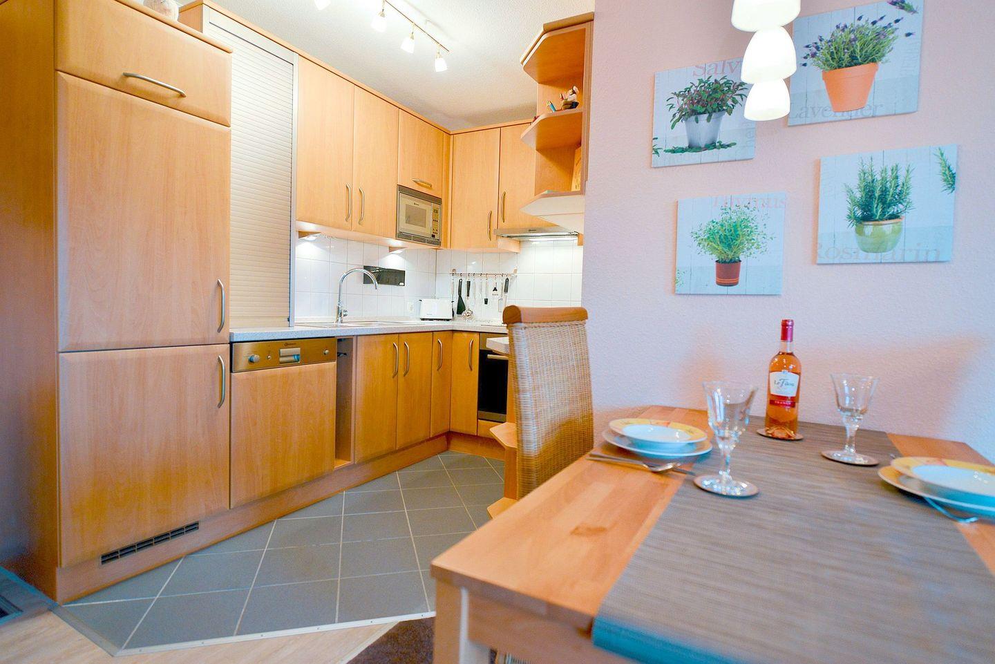Für das alltägliche Wohlbefinden ist dank der vollwertigen Ausstattung der Ferienwohnung stets gesorgt so lassen sich in der vollausgestatteten Küche leckere Gerichte für ein entspanntes Essen auf dem überdachten Balkon zubereiten und das Bad mit Dusche lässt Sie täglich neue Energie für weitere tolle Urlaubstage tanken.