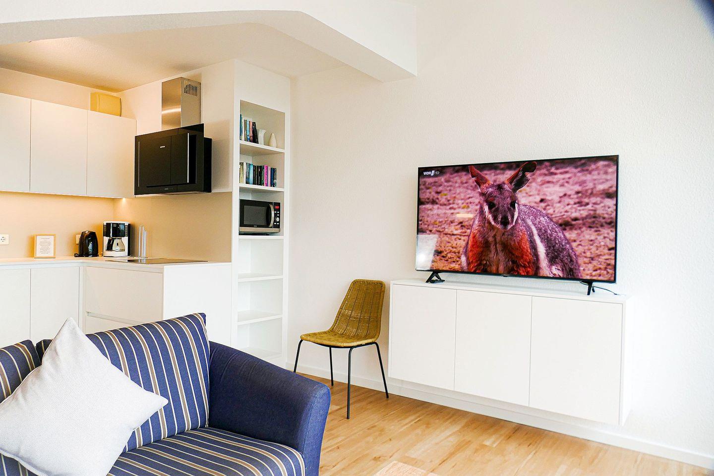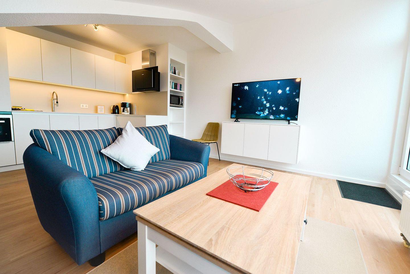 Die Penthousewohnung NB72 in der Nordseebrandung in Cuxhaven-Sahlenburg bietet auf 47 m² modernen Komfort und eine angenehme Urlaubsatmosphäre. Die hochwertige Küchenzeile, der gemütliche Wohnbereich mit Flatscreen-TV und das neue Duschbad sorgen für entspannte Urlaubstage. Kostenloses WLAN ist verfügbar. Der Strand liegt nur etwa 200 Meter entfernt und ist schnell erreichbar. Zwei große Dachterrassen bieten viel Platz zum Entspannen und laden zu sonnigen Stunden nach einem Tag am Meer ein. Ein kostenloser Parkplatz befindet sich direkt am Haus. Saisonabhängig steht ein Bäcker im Gebäude zur Verfügung. In unmittelbarer Nähe erwarten Sie Wald, Heide sowie zahlreiche Rad- und Wanderwege – ideal für aktive und erholsame Tage an der Nordsee.