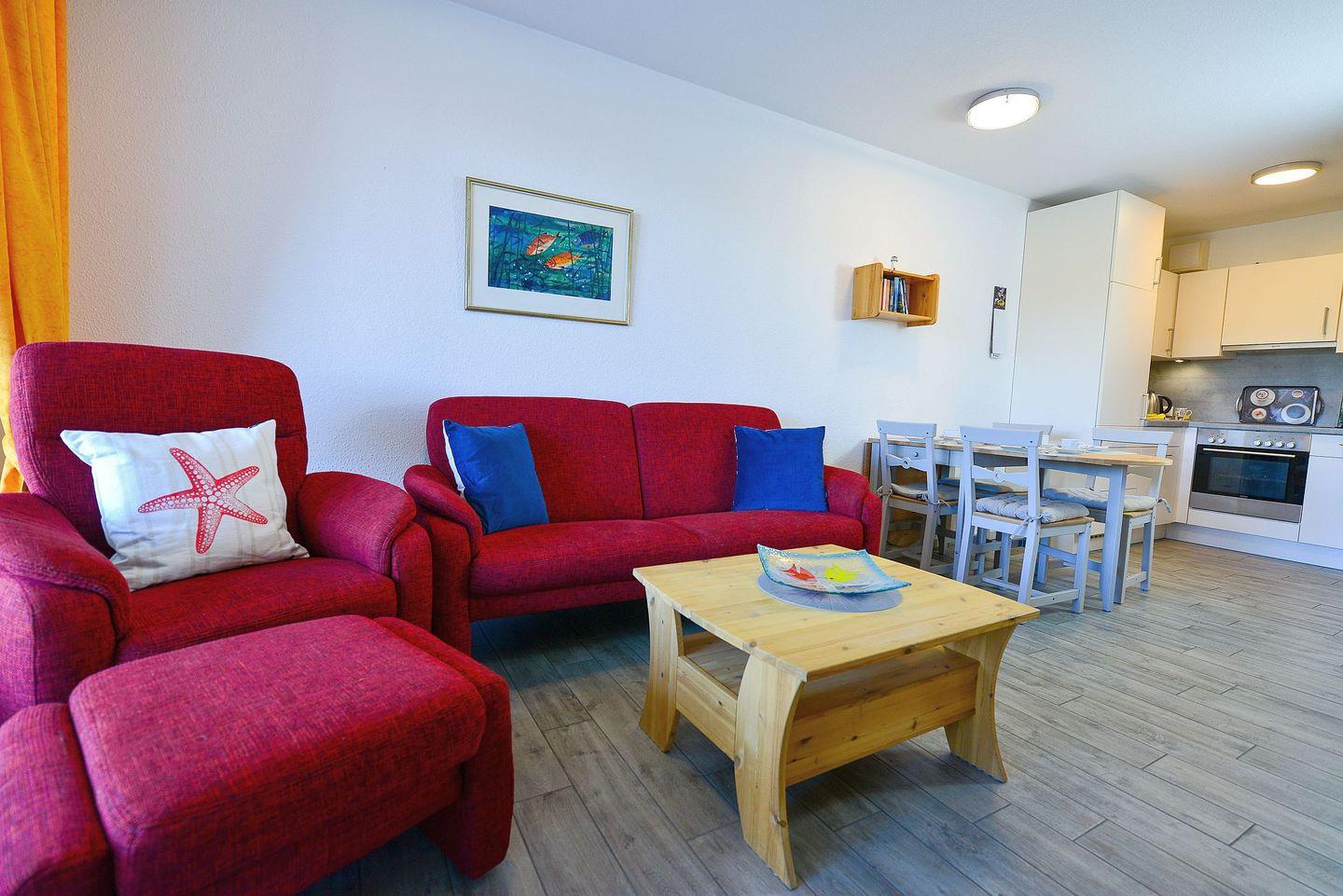 Die geräumige und 69m² große Ferienwohnung begrüßt Nordseeurlauber mit hochwertiger Ausstattung und schönem Ambiente.