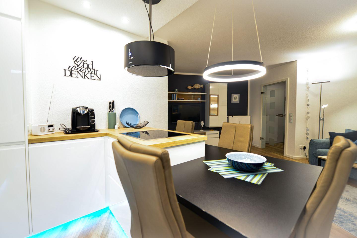 Besonderes Highlight ist der sonnige, überdachte Südbalkon – ideal, um nach einem Tag am Meer zu entspannen und die frische Nordseeluft zu genießen. Die Wohnung ist haustierfrei, besonders gepflegt und in einem modernen, stilvollen Ambiente gestaltet.