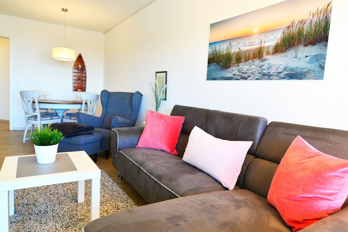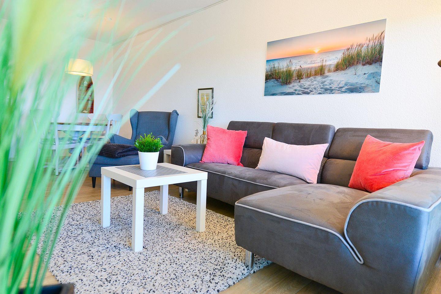 Die lichtdurchflutete und ganze 71m² große Ferienwohnung überzeugt mit hochwertiger Einrichtung und nordischem Wohlfühlcharme.