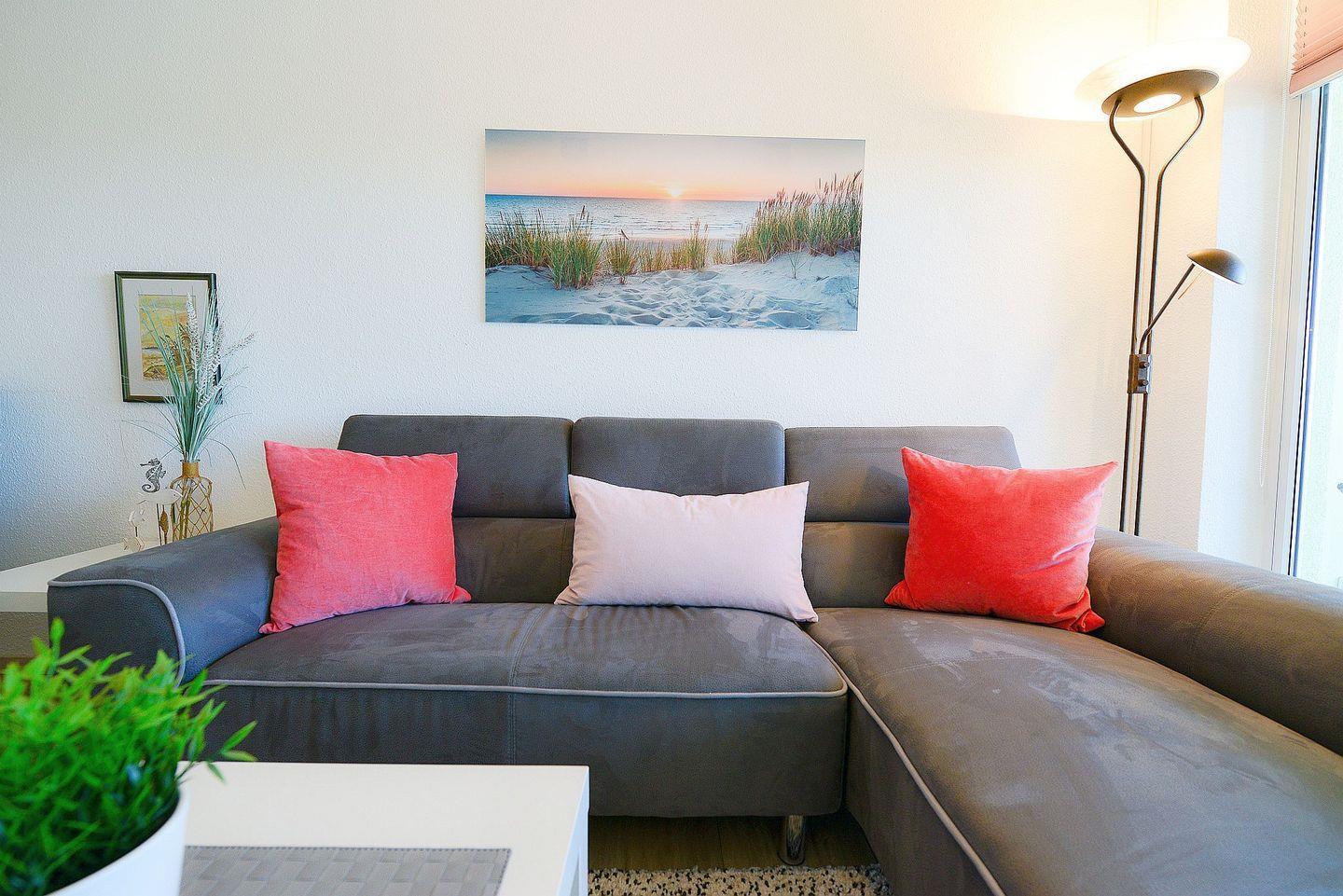 Die lichtdurchflutete und ganze 71m² große Ferienwohnung überzeugt mit hochwertiger Einrichtung und nordischem Wohlfühlcharme. Lassen Sie in den schönen Räumlichkeiten die Seele baumeln und spannen Sie ganz gemütlich aus vom Alltag.