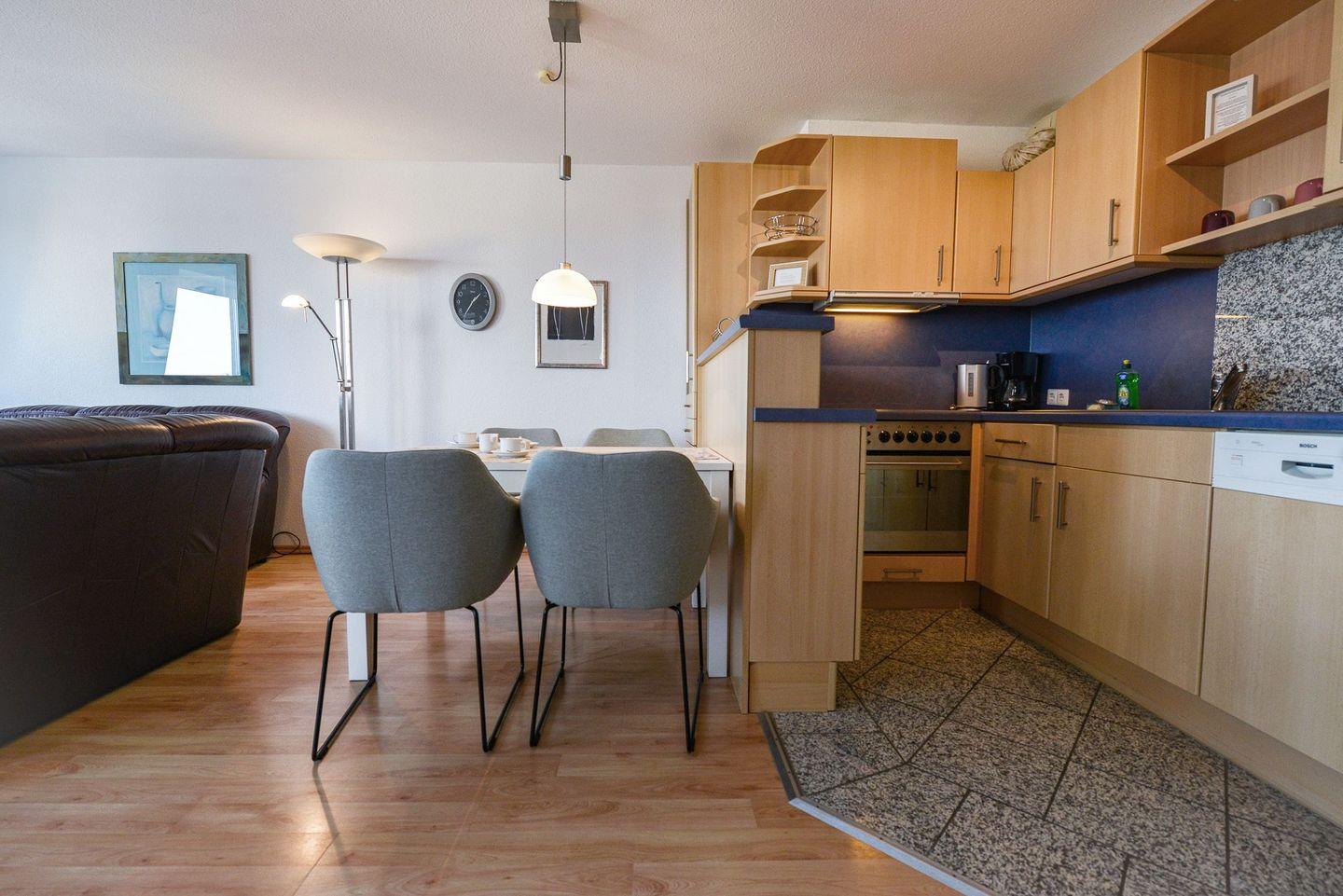 Eine schöne Zeit außerhalb der langen Tage am Strand lässt sich auf den 59m² dieser hochwertig eingerichteten Wohnung verbringen, die Sie einen Urlaub ohne Abstriche erleben lässt. Lange und entspannte Stunden mit direktem Blick aufs Meer und Meeresrauschen garantiert der überdachte Balkon, der zum Ausspannen, Sonnen und Erholen einlädt.