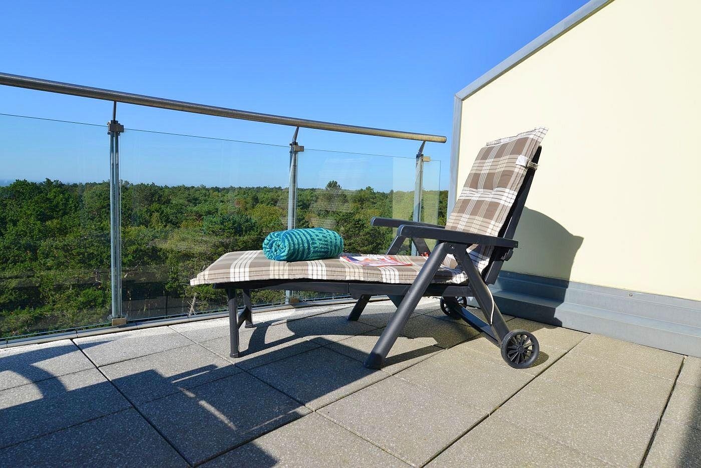 Lange und entspannte Stunden mit direktem Blick aufs Meer, die Insel Neuwerk und dazugehörigem Meeresrauschen garantiert der große Dachterrassenbalkon, der zum Ausspannen, Sonnen und Erholen von langen Strandstunden einlädt und Ihnen bestimmt in Erinnerung bleiben wird.