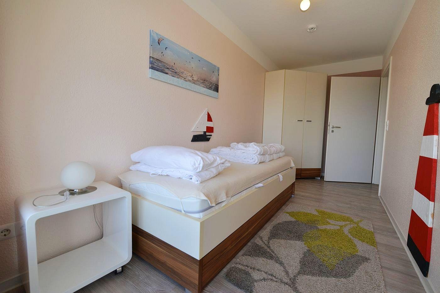 Für Ihren PKW steht ein Tiefgaragenstellplatz zur Verfügung. Die Wohnung ist ca. 200m vom Strand, entfernt und ein Bäcker befindet sich im Haus (je nach Saison geöffnet)