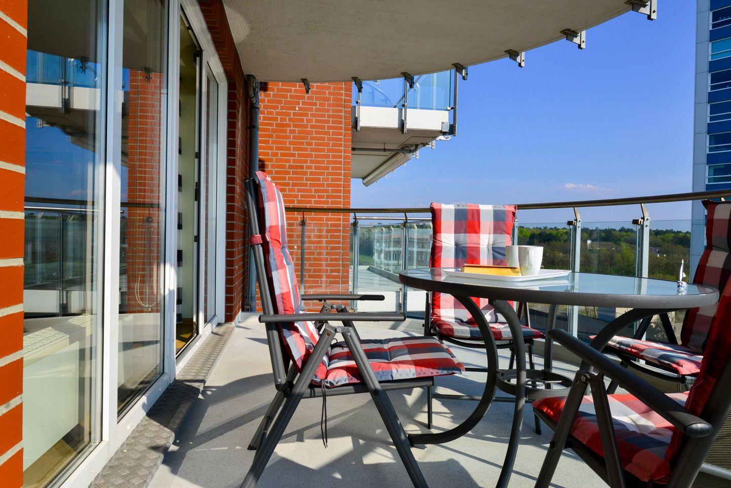 Lange und entspannte Stunden lassen sich auf dem großen überdachten Balkon verbringen, der Ihnen einen direkten Blick aufs Meer bietet und somit zum Sonnen und Erholen von langen Strandstunden einlädt.