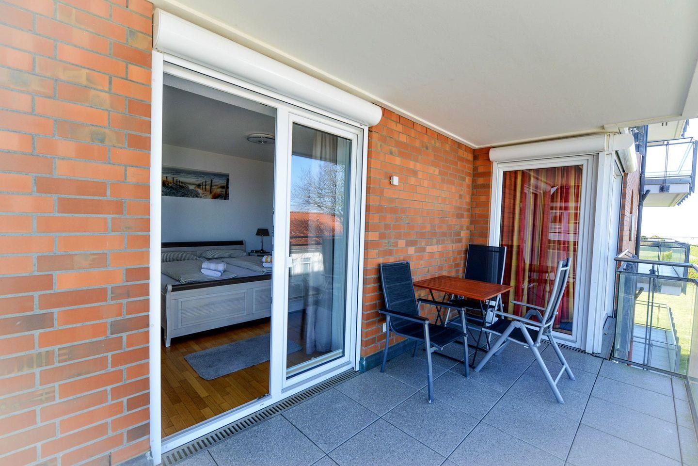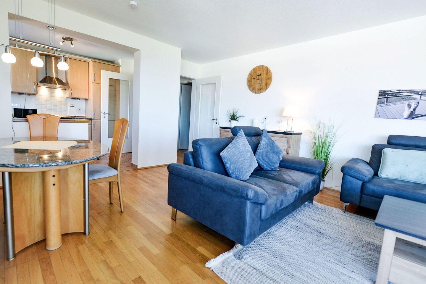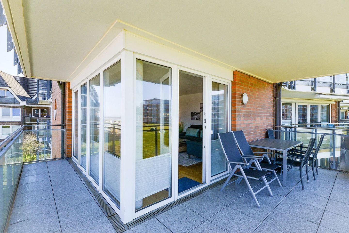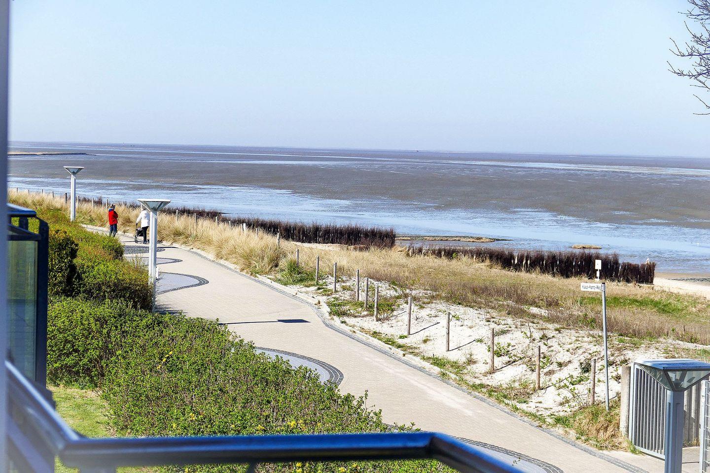 Moderne Ferienwohnung in Cuxhaven-Duhnen mit Meerblick, zwei Balkonen und direktem Zugang zum Strand.