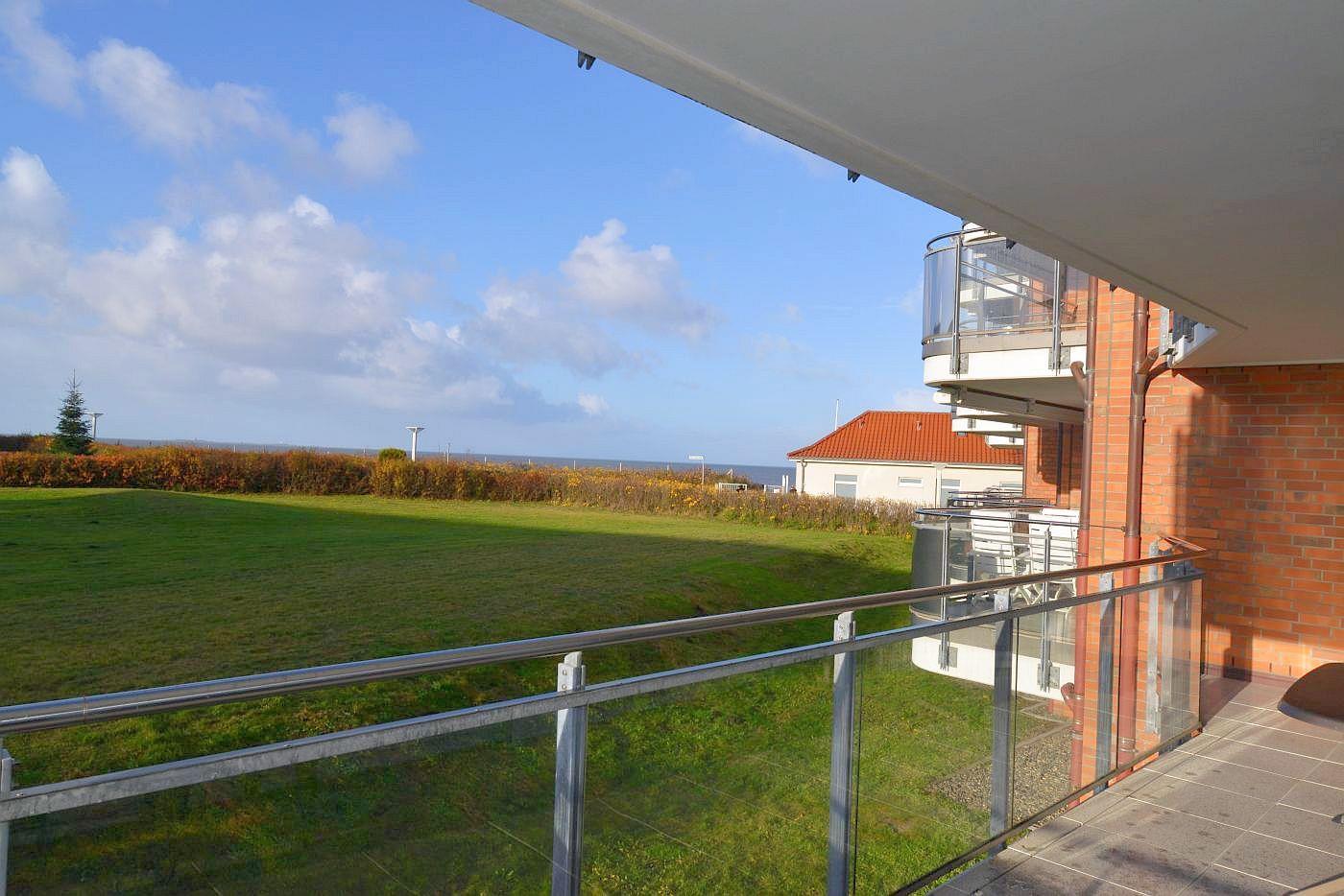 Moderne 2-Zimmer-Ferienwohnung im Strandpalais Cuxhaven-Duhnen mit Meerblick und direktem Zugang zur Tiefgarage.