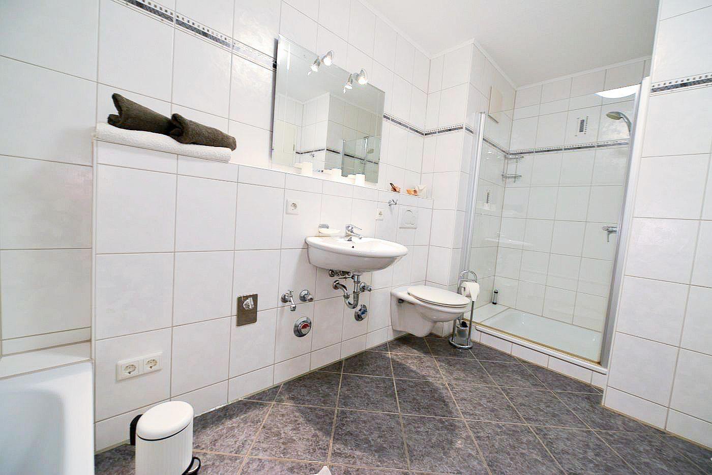 Die Wohnung verfügt über zwei separate Schlafzimmer, ein großzügiges Wohn-/Esszimmer, eine voll ausgestattete Küchenzeile mit Geschirrspüler sowie ein modernes Badezimmer mit Dusche und Badewanne. Zwei Flatscreen-TVs und kostenfreies WLAN sorgen für entspannte Abende. Der eigene Tiefgaragenstellplatz bietet direkten Zugang zur Wohnung – bequem mit dem Aufzug erreichbar und ohne Zusatzkosten.