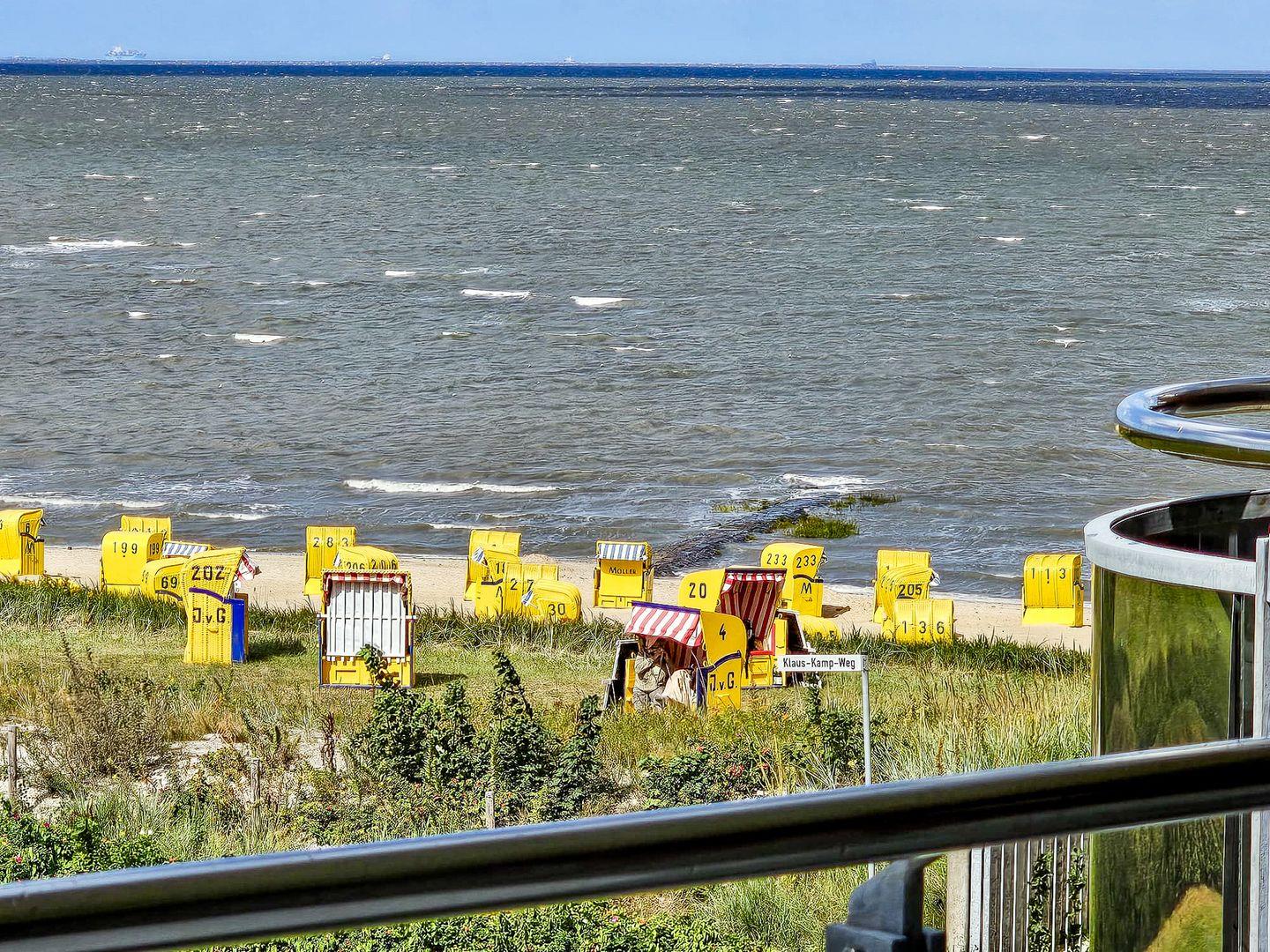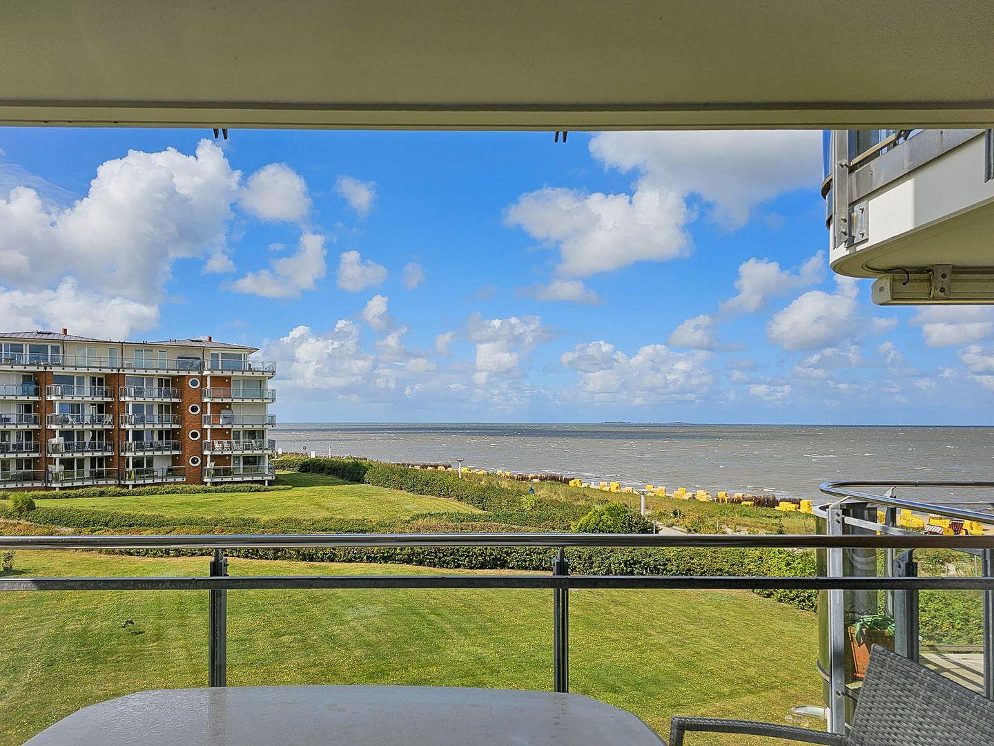 Moderne Ferienwohnung PB16 in Cuxhaven Duhnen mit direktem Meerblick, zwei Schlafzimmern, WLAN und zwei Balkonen an der Strandpromenade.