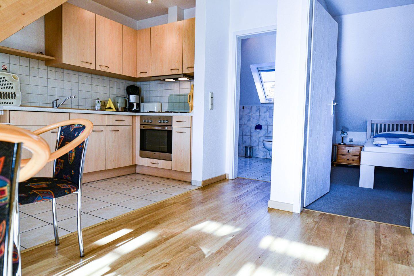 Die vollausgestattete Küchenzeile, wie auch das schöne helle Bad, die Fußbodenheizung und das große Wohnzimmer sorgen für Wohlgefühl und Erholung in Ihrer Ferienwohnung.