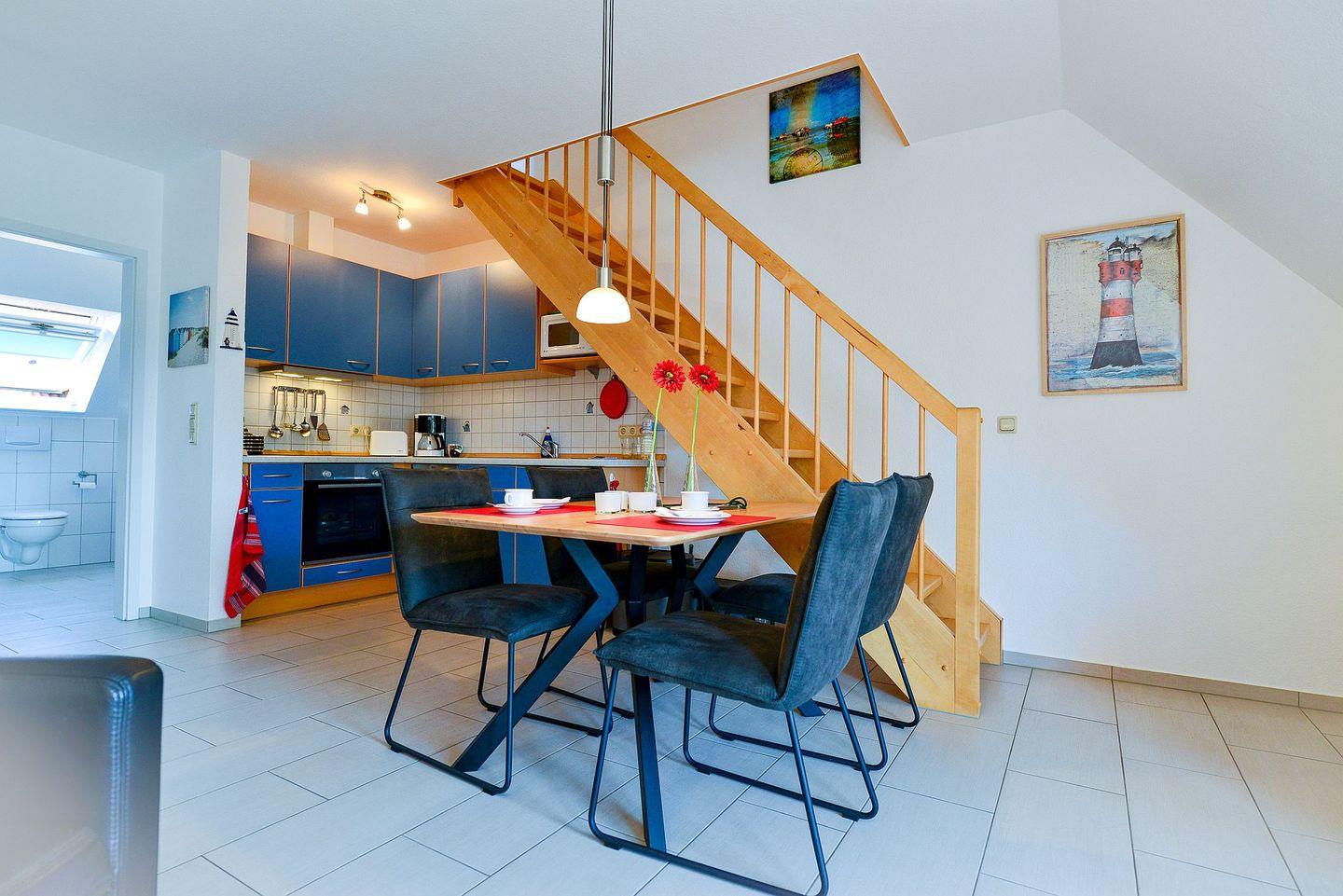 Freuen Sie sich auf eine schöne Zeit in der 55m² großen Ferienwohnung, die bis zu 4 Personen auf zwei Etagen genügend Raum bietet, um einen wunderbaren Urlaub zu verbringen.