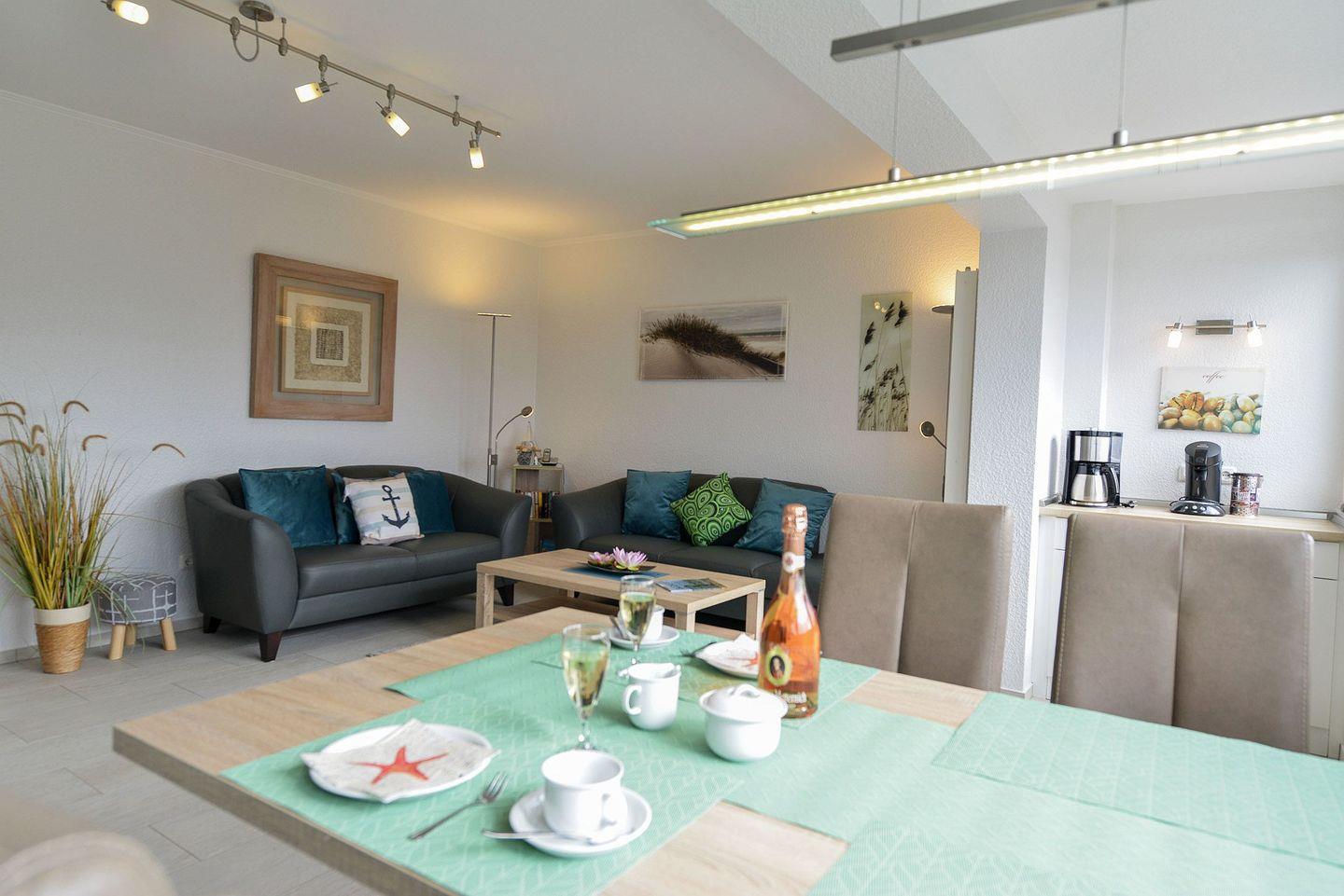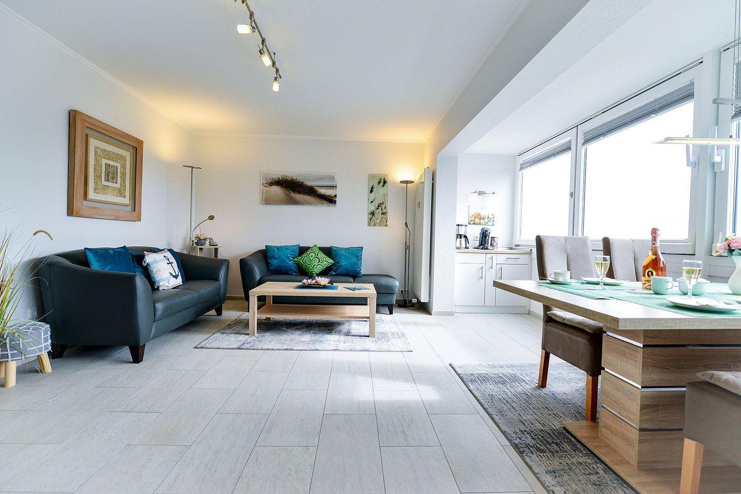 Die ca. 60m² große Ferienwohnung für 4 Personen begrüßt Sie mit modernem Flair, hochwertigen Betten, Schwimmbad, Sauna und viel Raum für einen entspannten Urlaub im schönen Norden Deutschlands - Meeresrauschen inklusive!
