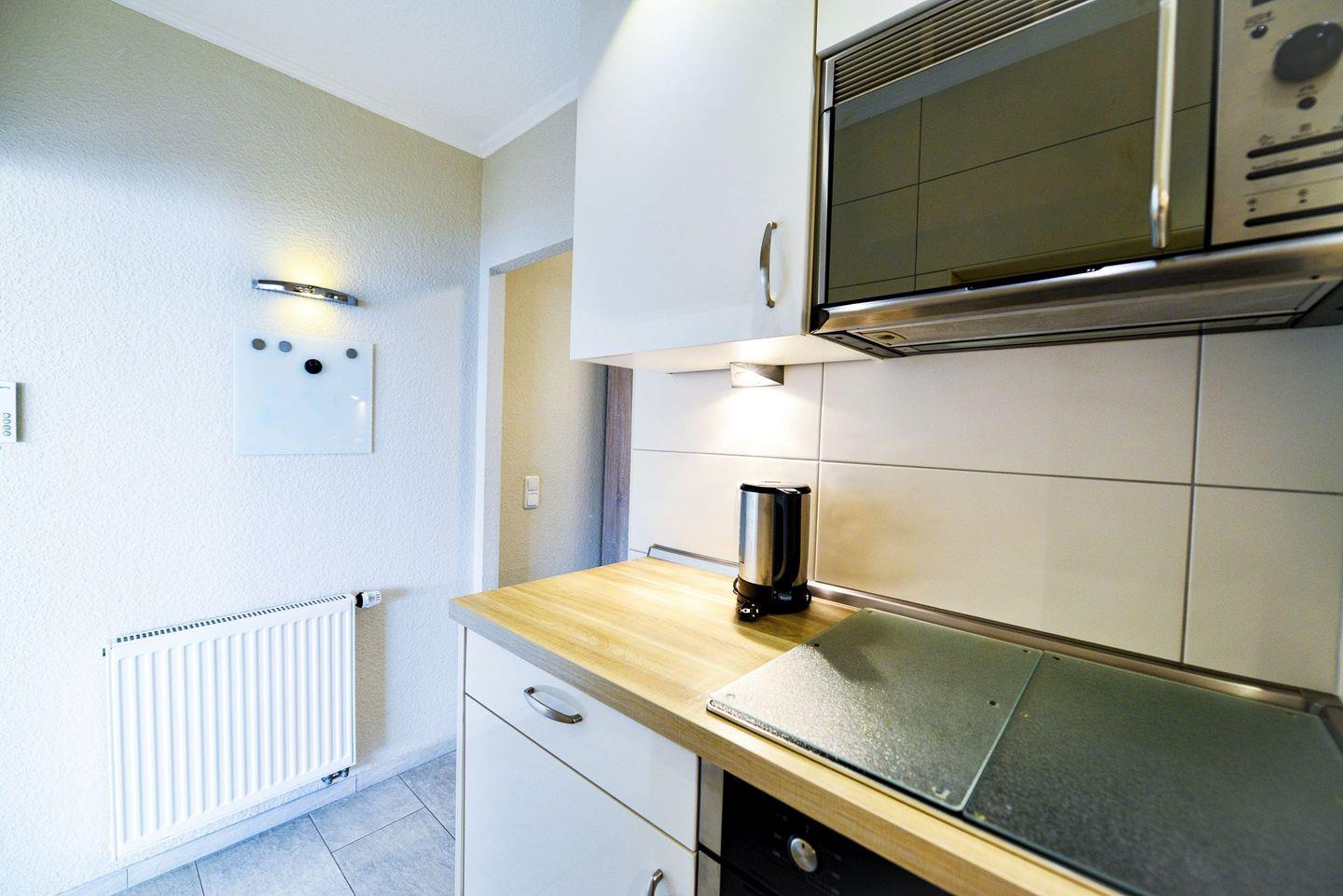 Die lichtdurchflutete Ferienwohnung mit seitlicher Seesicht befindet sich in direkter Strandlage mit einer modernen, offenen und vollausgestatteten Küche, sodass Sie jeden Urlaubstag mit einem entspannten Frühstück am Meer beginnen können.