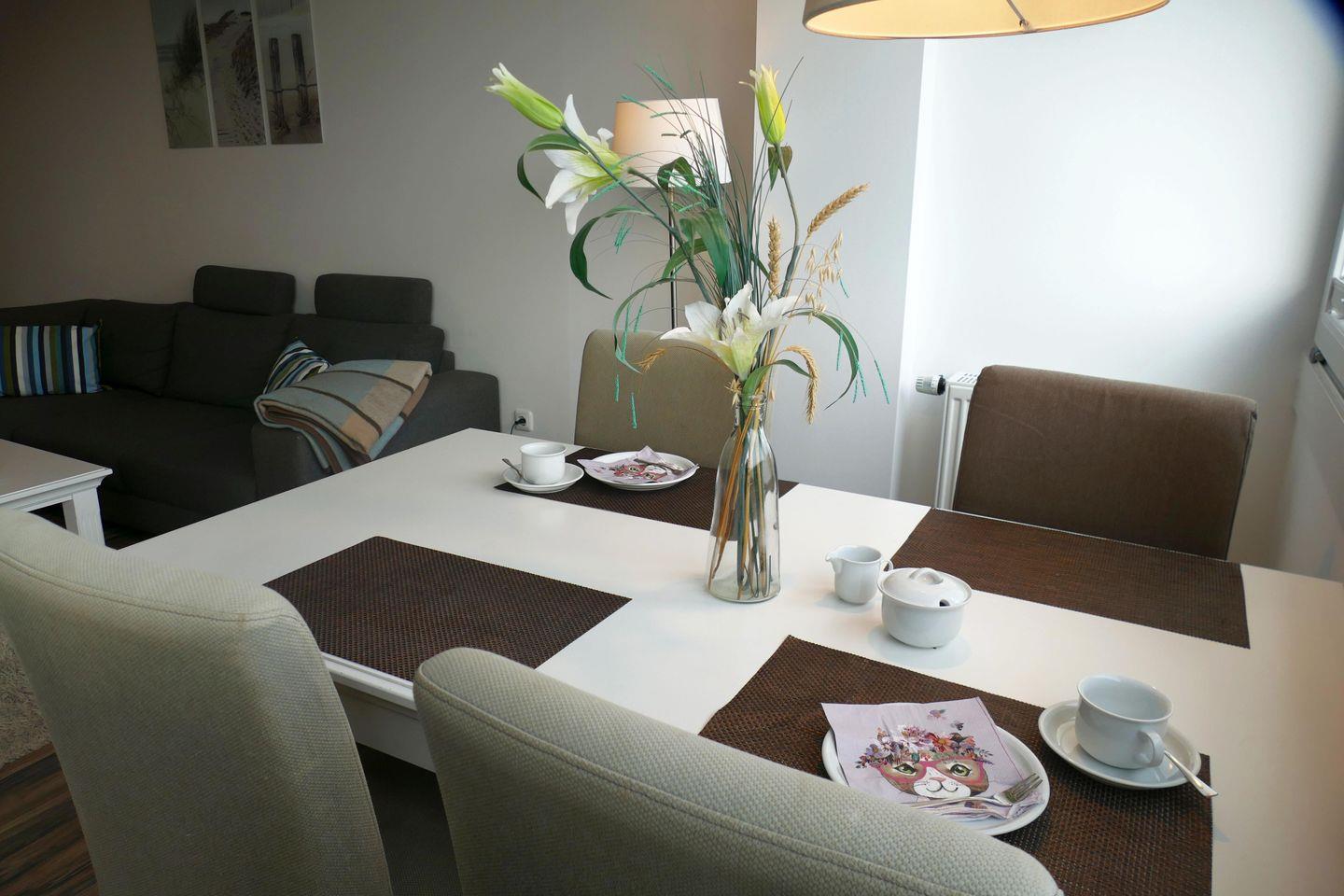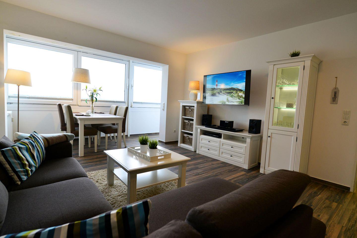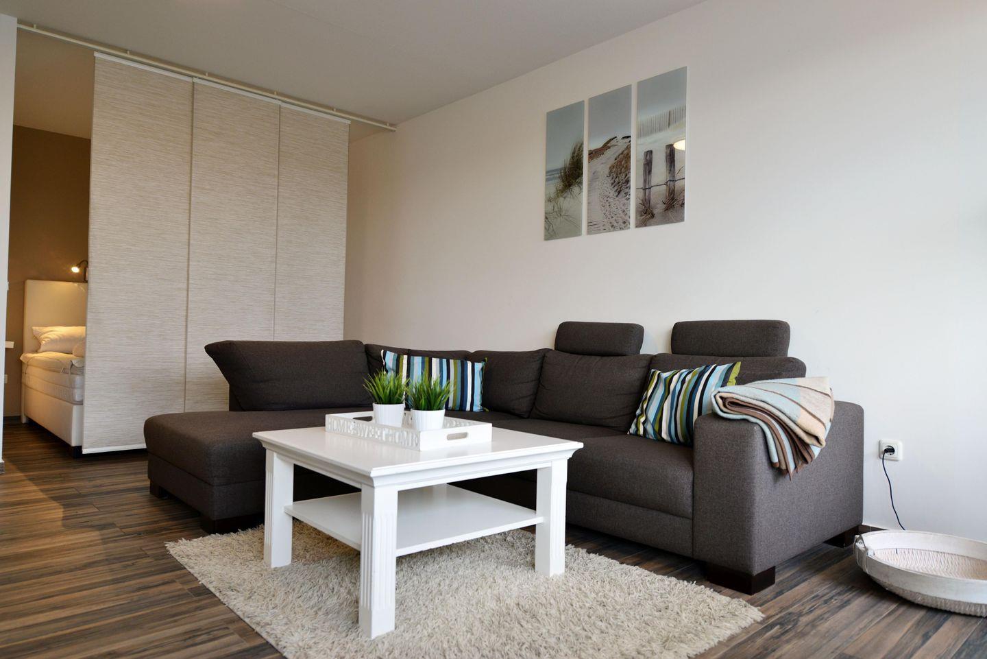 Die ca. 50m² große Ferienwohnung für bis zu 4 Personen begrüßt Sie mit modernem Flair, Schwimmbad, Sauna und viel Raum für einen entspannten Urlaub im schönen Norden Deutschlands – Meeresrauschen inklusive!