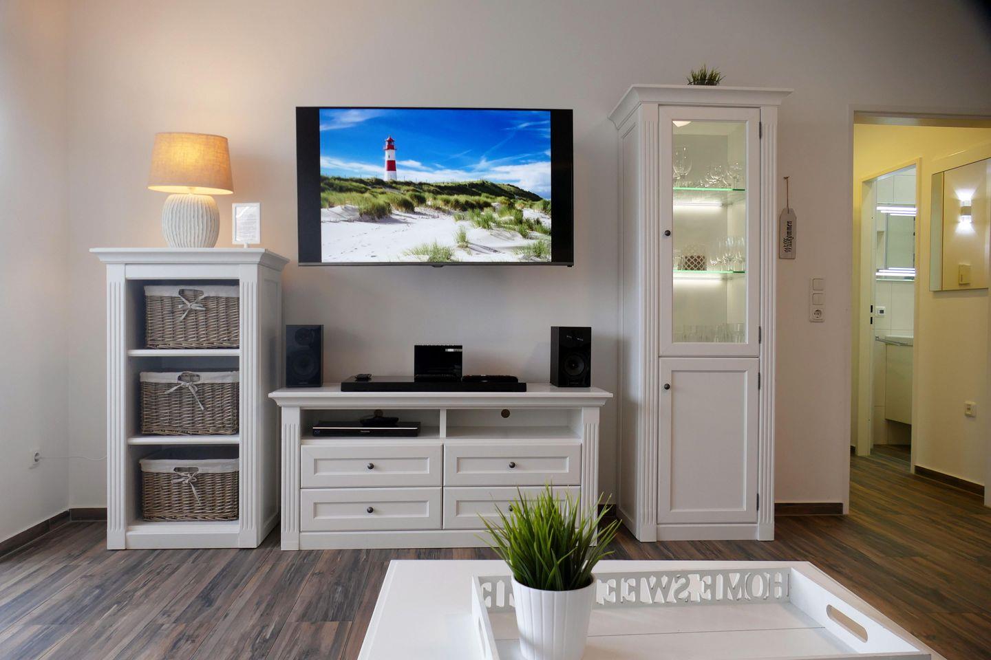 Die beiden Flatscreen TVs und das kostenlose WLAN garantieren gemütliche und entspannte TV Abende, um sich vom langen Strandtag zu erholen und einfach die Seele baumeln zu lassen.