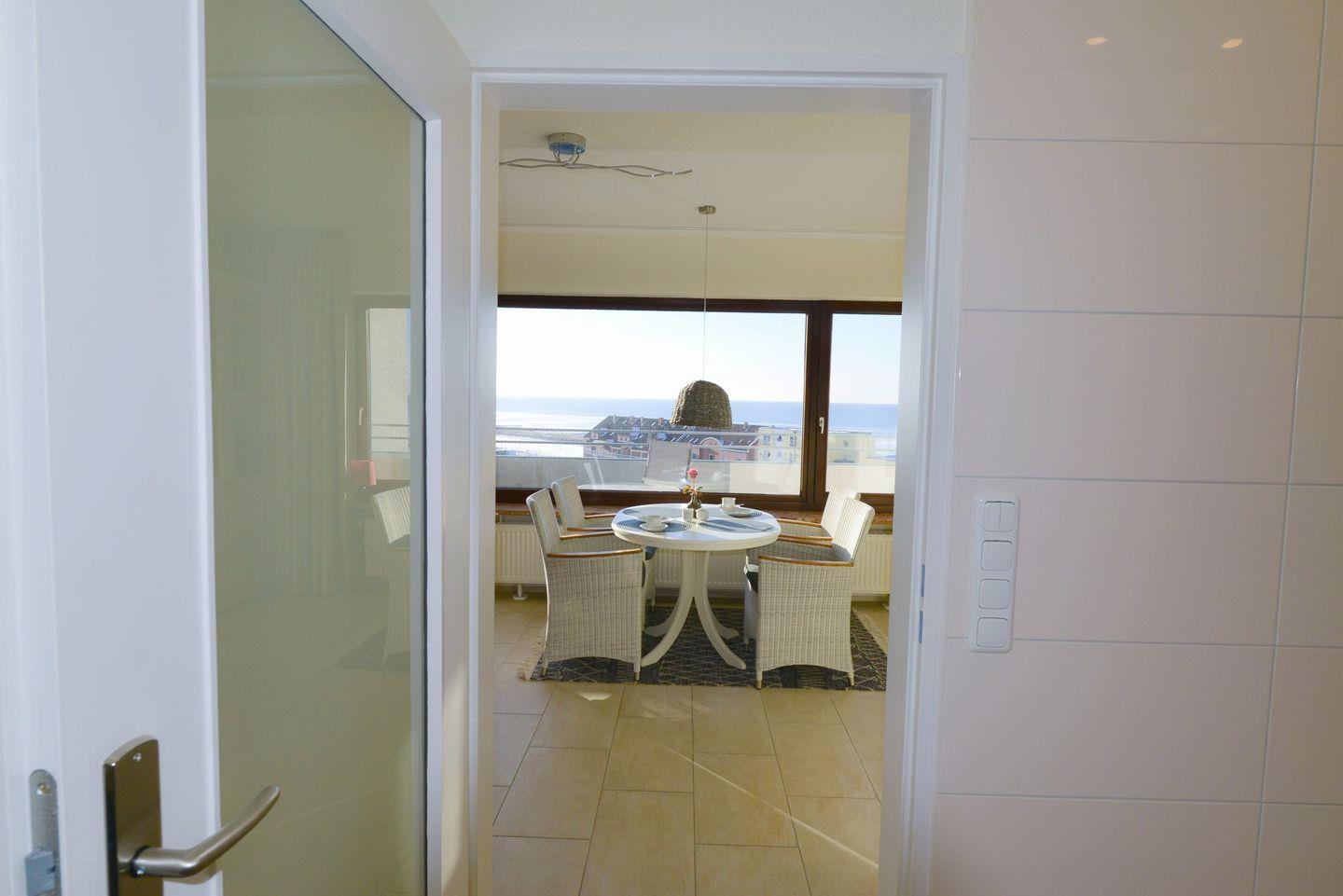 Die modern eingerichtete Ferienwohnung in der 6. Etage begrüßt Sie und bis zu 3 weitere Personen mit hochwertiger Ausstattung und viel Raum für einen entspannten Urlaub -Panoramaseesicht und ein überdachter Westbalkon inklusive!