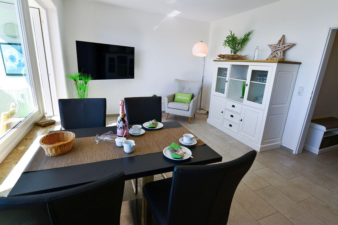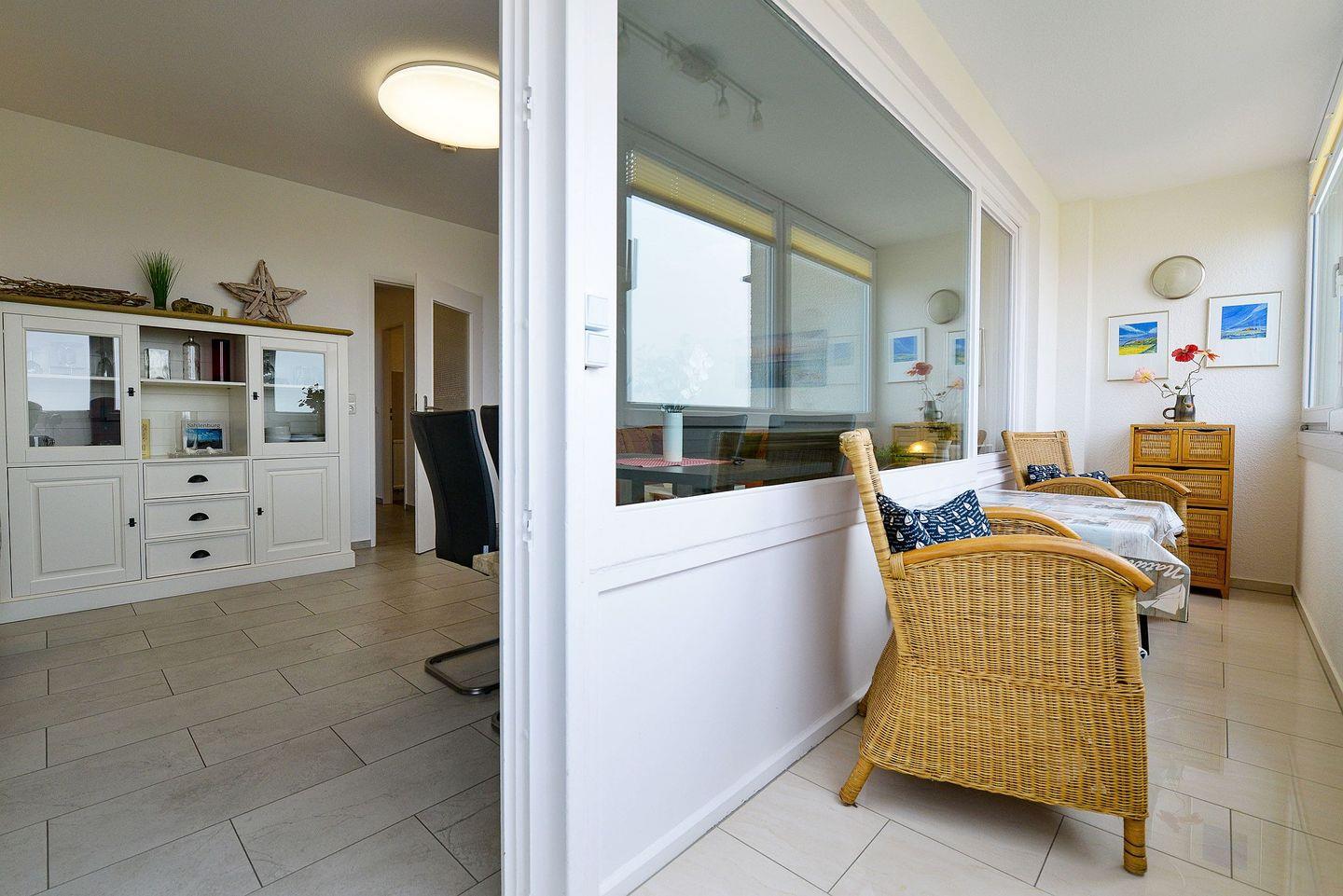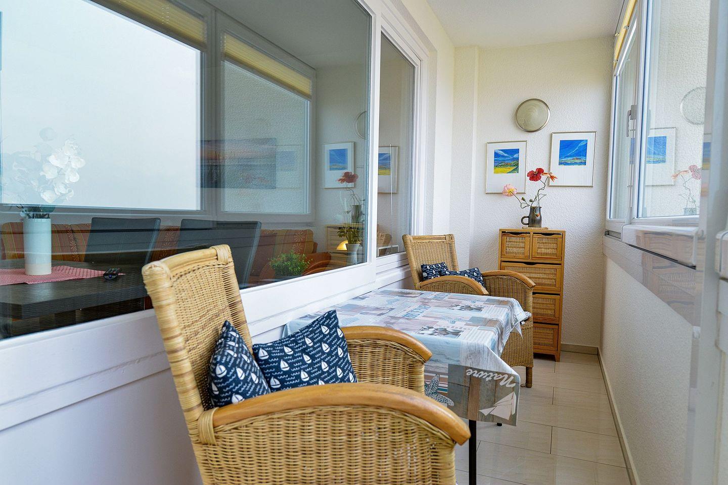 Moderne Ferienwohnung in Cuxhaven-Sahlenburg mit Meerblick, Balkon, Schwimmbad und Sauna lädt zur entspannten Auszeit am Wattenmeer ein.