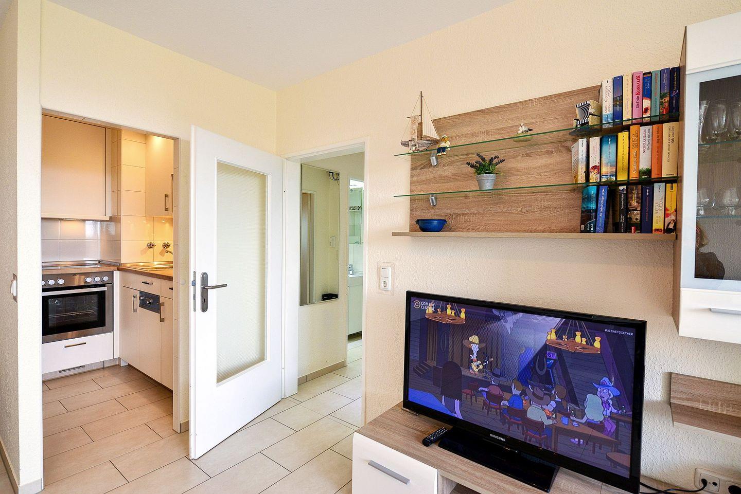 Durch die vielen Fenster strömt das natürliche Licht in die Räume und eröffnet einen unvergleichlichen Blick auf das Meer. Die moderne offene Küche lädt zu entspannten Frühstücken mit Meerblick ein. Das frisch renovierte Bad mit moderner Regendusche sorgt für Erholung nach einem Tag am Strand.