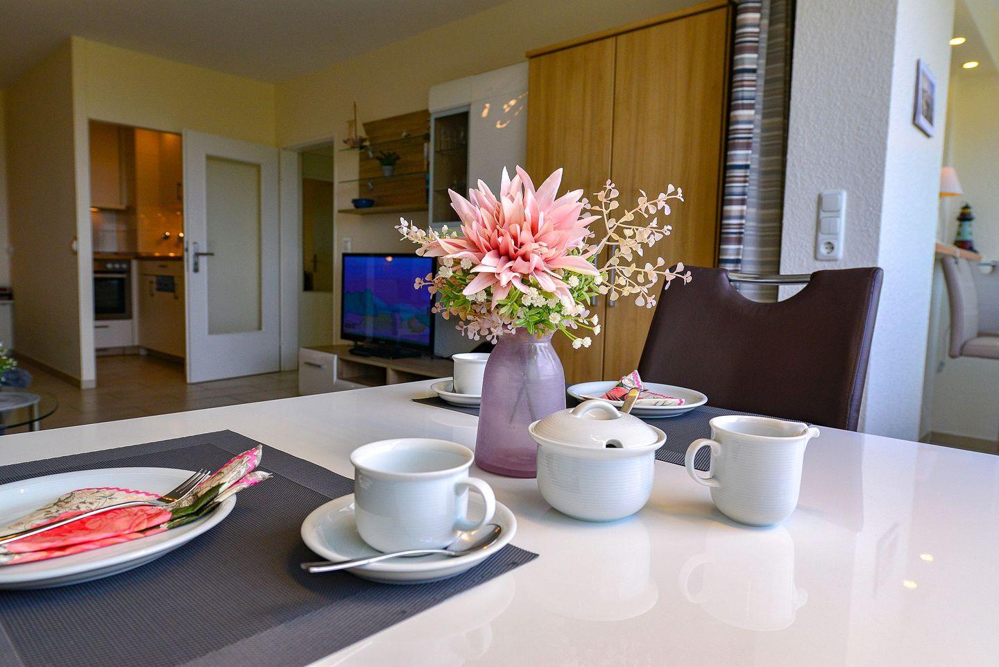 Die 50m² große und liebevoll eingerichtete Ferienwohnung für bis zu 4 Personen begrüßt Sie mit charmantem Flair, Schwimmbad, Sauna im Haus und viel Raum für einen entspannten Urlaub im schönen Norden Deutschlands ? Meeresrauschen mit direktem Seeblick inklusive!