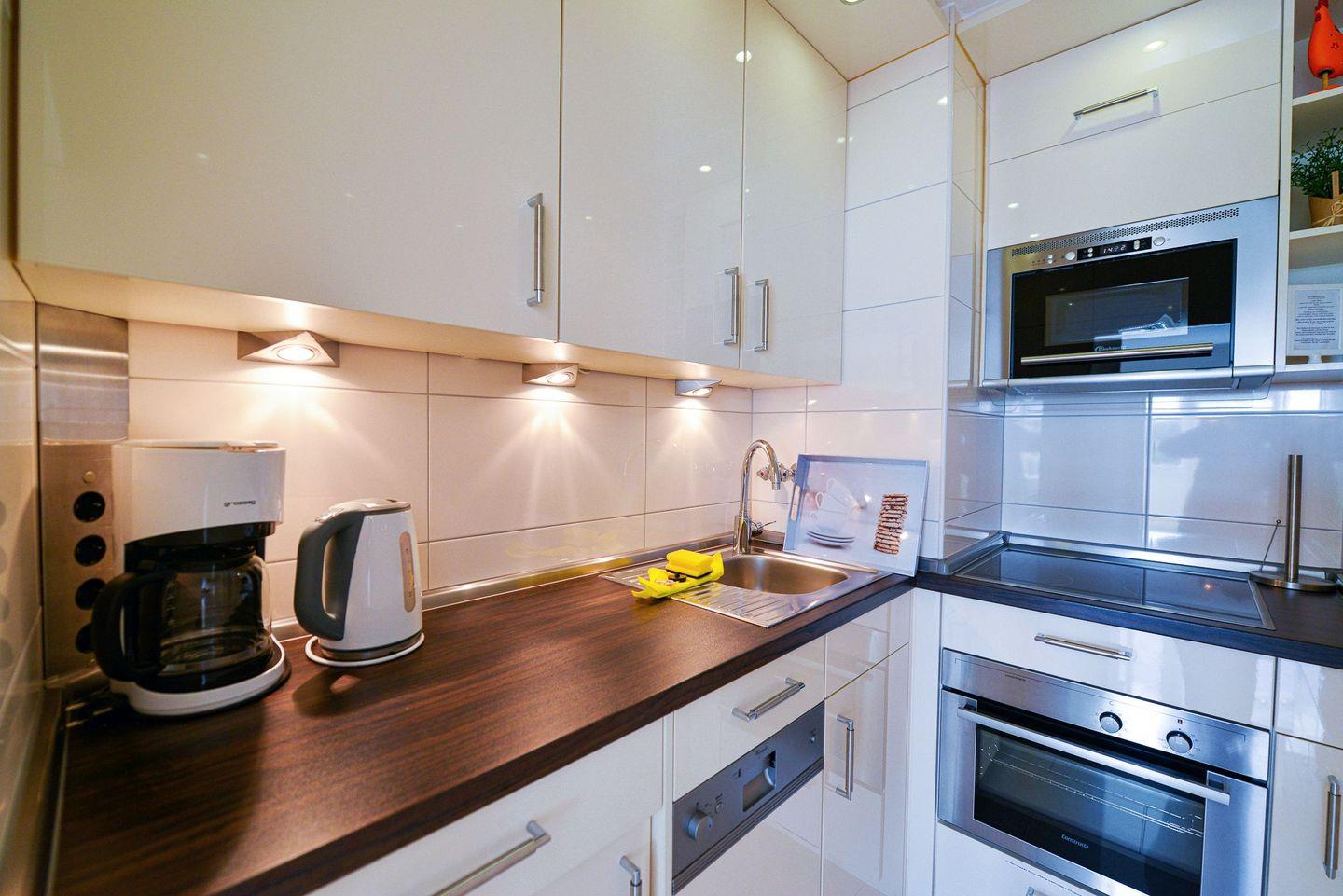 Ein separates Schlafzimmer mit Doppelschlafsofa, ein zusätzlicher Schlafplatz im Wohnbereich, eine offene Küche mit kompletter Ausstattung und ein modernes Bad mit ebenerdiger Dusche sorgen für Komfort. Die verglaste Südfensterfront lässt sich öffnen und bietet seitlichen Blick zur Nordsee. WLAN, zwei TVs sowie ein kostenfreier Parkplatz gehören zur Ausstattung. Die Sauna im Haus steht gegen Gebühr zur Verfügung. Hunde sind willkommen.