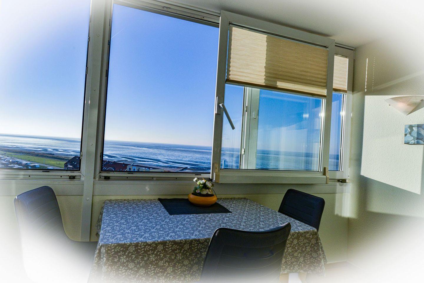 Um Ihre Anreise und den Aufenthalt so komfortabel wie möglich zu gestalten, verfügt die Ferienwohnung über eine kostenlose Garage für Ihr Auto und der Fahrstuhl bringt Sie und Ihr Gepäck entspannt in die im 9. Stock des Hauses gelegene Ferienwohnung mit Panoramaseesicht auf die Insel Neuwerk.
